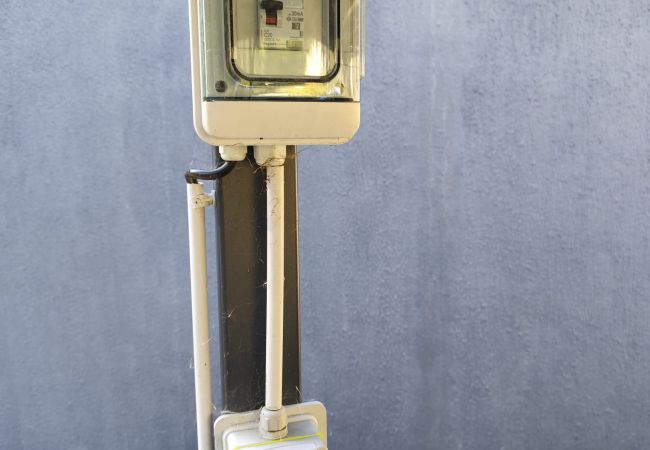 Im Außenbereich ermöglicht ein Carport das Abstellen Ihres Fahrzeugs, ausgestattet mit einer Ladestation für Elektroautos.