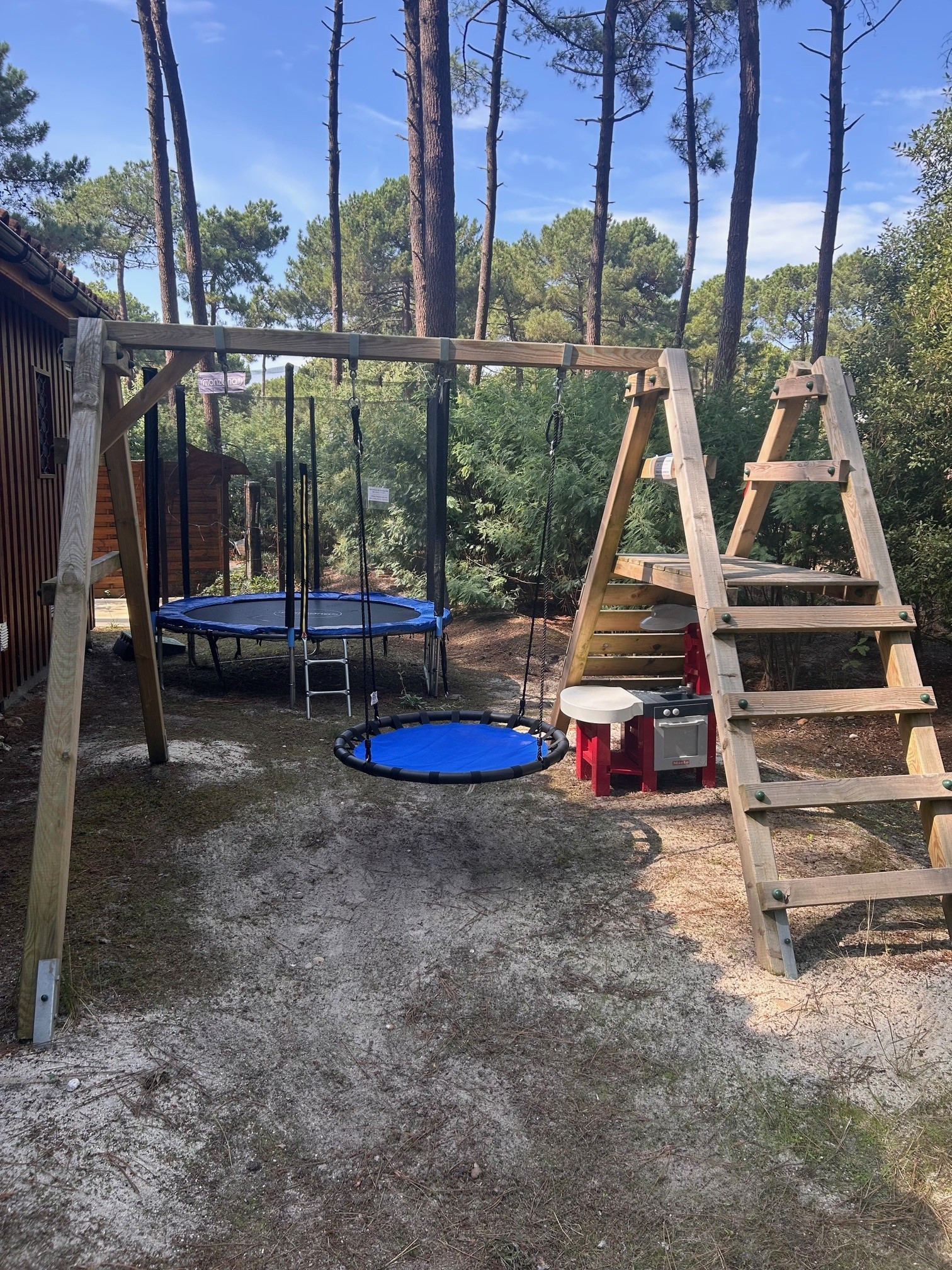 Seit 2023 gibt es hinter dem Haus eine Doppelschaukel mit Klettervorrichtung, für die viele verschiedene Schaukelsitze (Schaukelbrett, Stange, Ringe, Babykorb) im Schuppen auf ihre Jüngsten warten. Ferner stehen ein Bollerwagen, ein Kinderreisebett und ein -stuhl zur Verfügung. Ein Carport schützt ihr Fahrzeug vor Pinienharz.