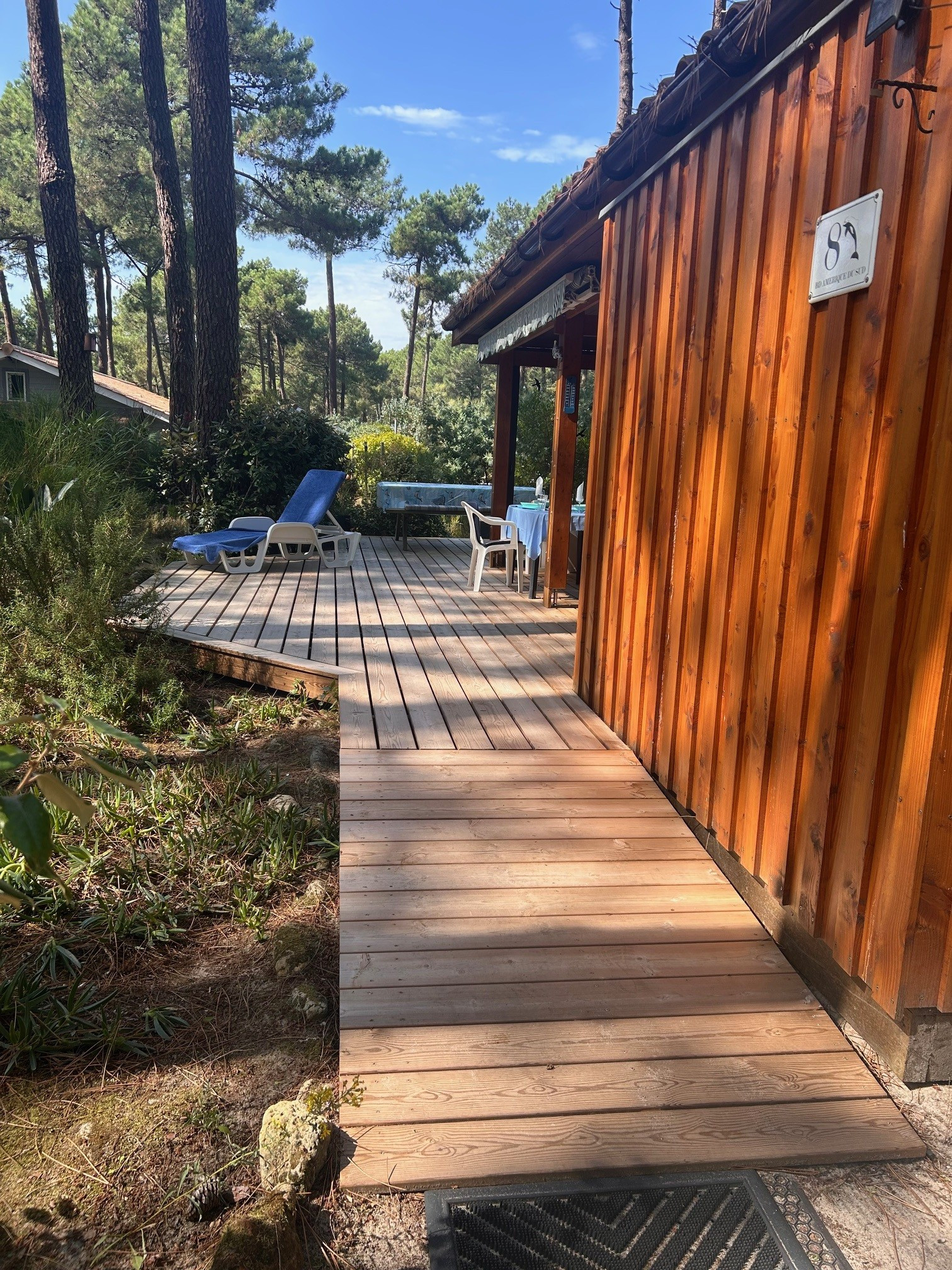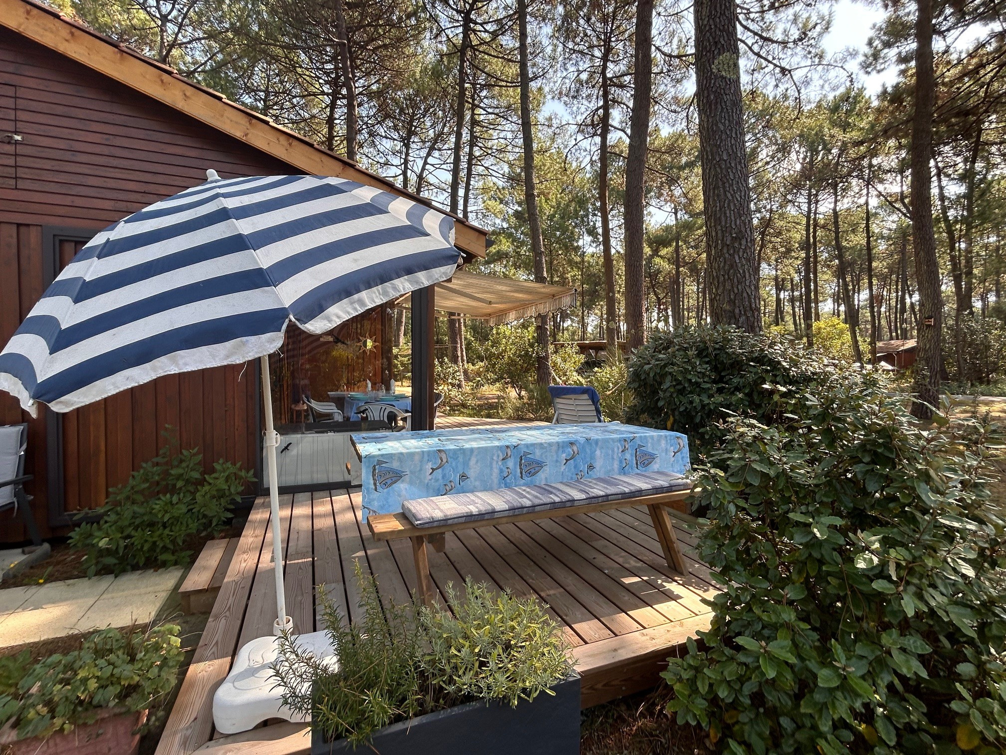 Wunderschönes Chalet in idealer Lage, ohne Gegenüber mit Blick auf den Pinienwald, mit drei Sonnenterrassen und einem ausgestatteten Wintergarten. Moderne und gepflegte Einrichtung; ideal für einen Familienurlaub. Glasfaser. 1 Doppelbett 140 x 190 und 2 Einzelbetten 90 x 190.4 Bewertungen