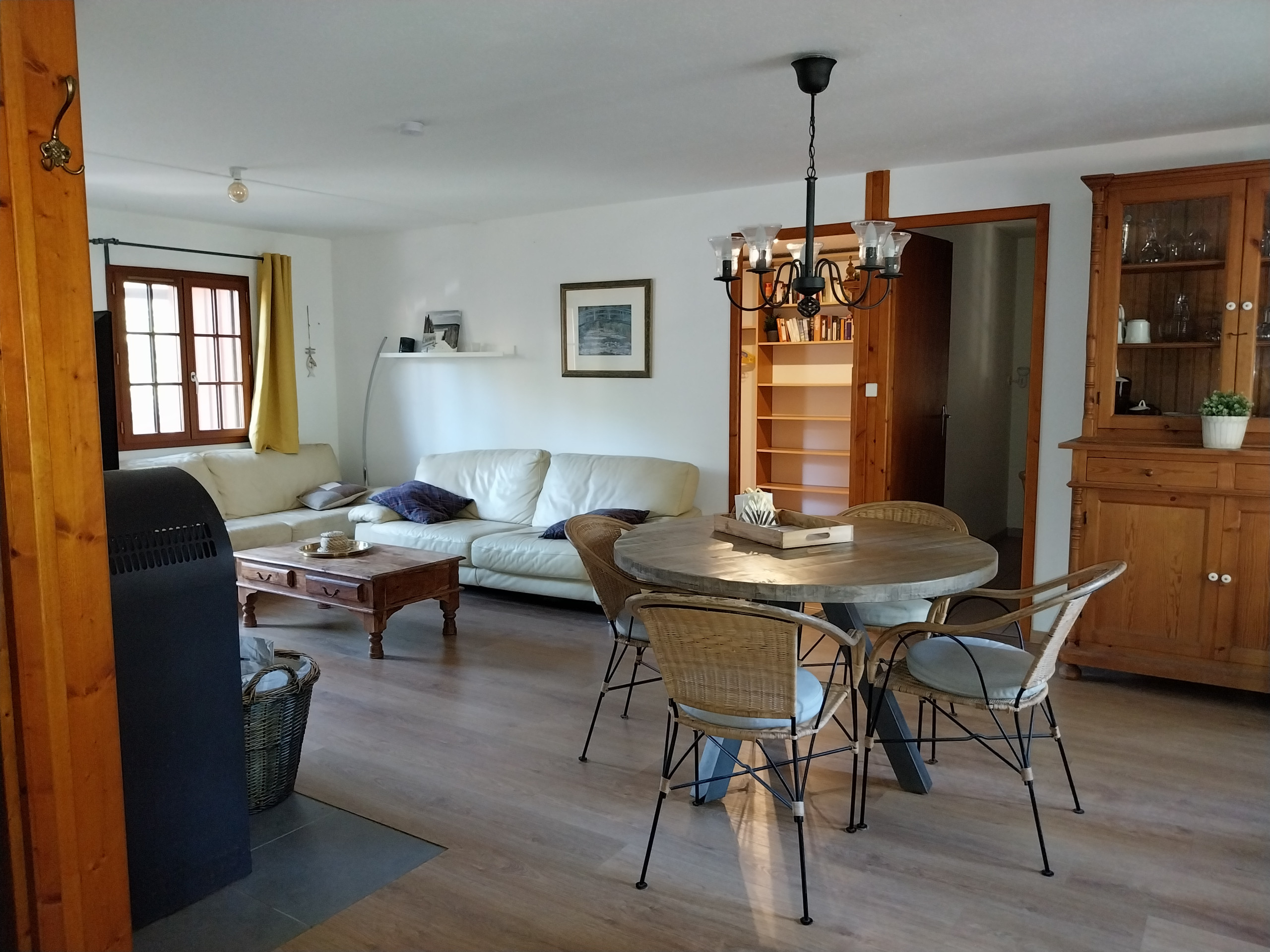 Schönes, voll ausgestattetes, sehr gepflegtes Chalet für eine Familie von 6 Personen mit 1 Schlafzimmer für Erwachsene im Erdgeschoss, 4 Betten im Obergeschoss (2 Zimmer vom Typ Schlafsaal) und einem neuen Schlafsofa. 1 Doppelbett 140x190, 4 Einzelbetten 90x190.