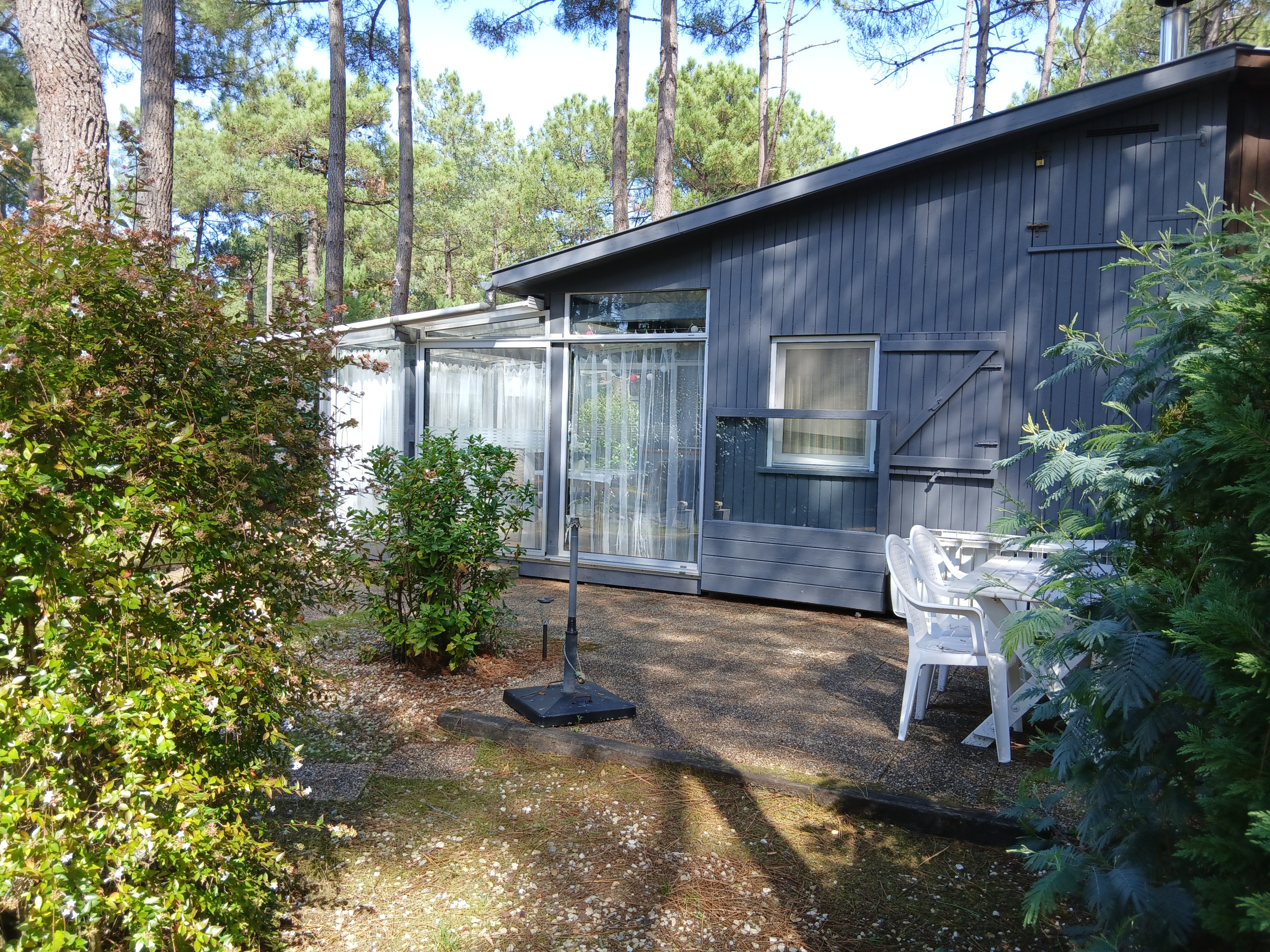 Ferienhaus erster Güte: Vor einigen Jahren renovierte, auf 40 m² erweiterte und liebevoll eingerichtete Doppelhaushälfte (Haustyp Perigord) – im Dorf Afrika, das an die Dünen heranreicht, im lichten Pinienwald liegt und parkähnlich gepflegt ist.