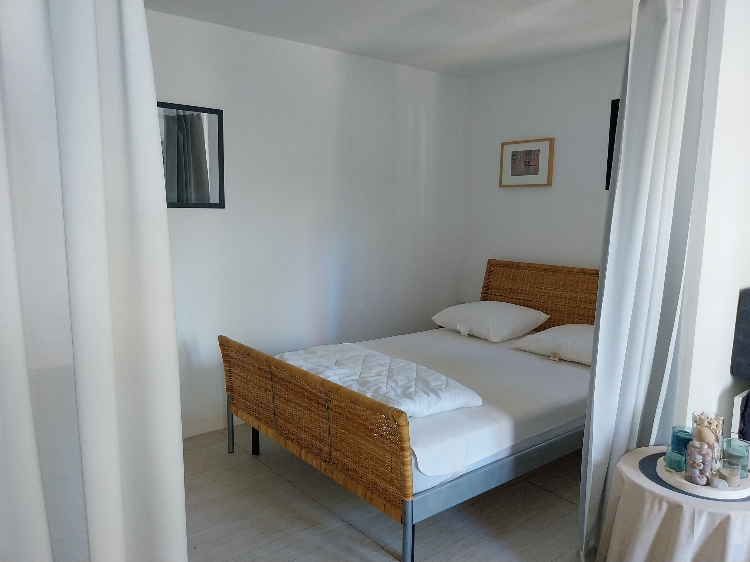Renoviertes Studio auf grosszügigem Grundstück, von der Strasse zurückversetzt, mit einem zusätzlichen Fenster auf der Westseite, Südterrasse und Markise. Das Studio wurde neu dekoriert und eine Wandheizung wurde installiert. Küche mit Spülmaschine, warme Aussendusche, Waschmaschine. Ein Studio zum Wohlfühlen! 1 Doppelbett 140x190, 1 Schlafcouch 2x80x200.4 Bewertungen