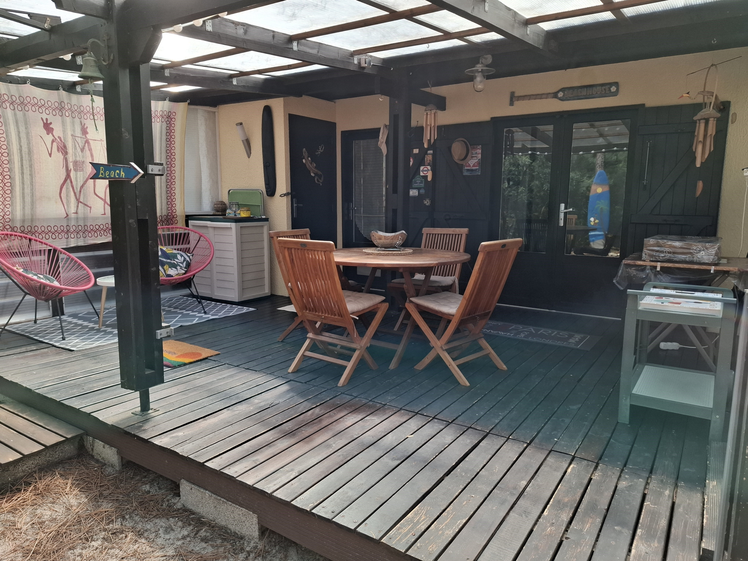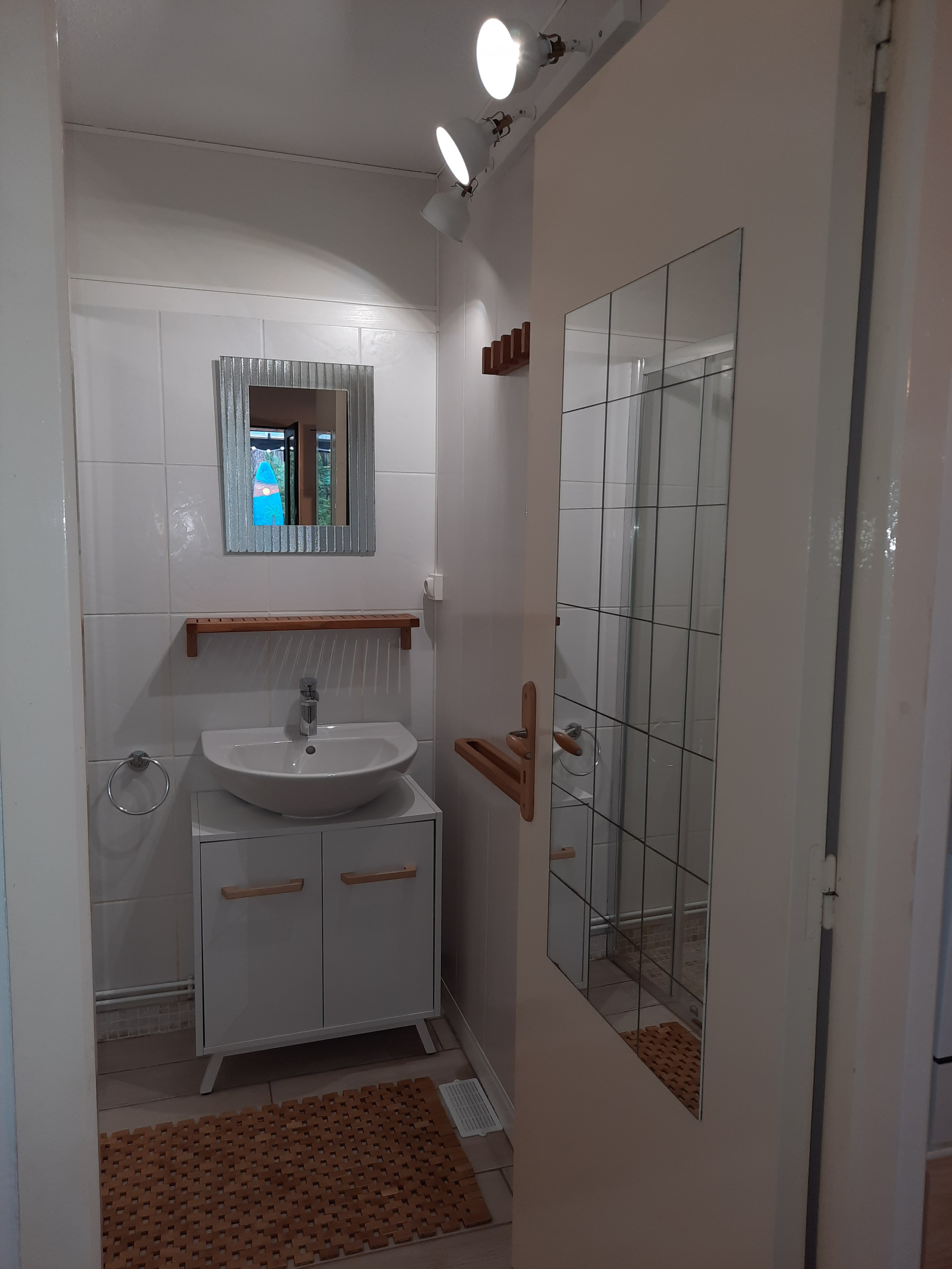 Draußen, wurde eine große Auffrischung des Grundstücks vorgenommen, wodurch es an Platz und Helligkeit gewonnen hat, und es wurde eine Kalt / Warm Außendusche installiert.
