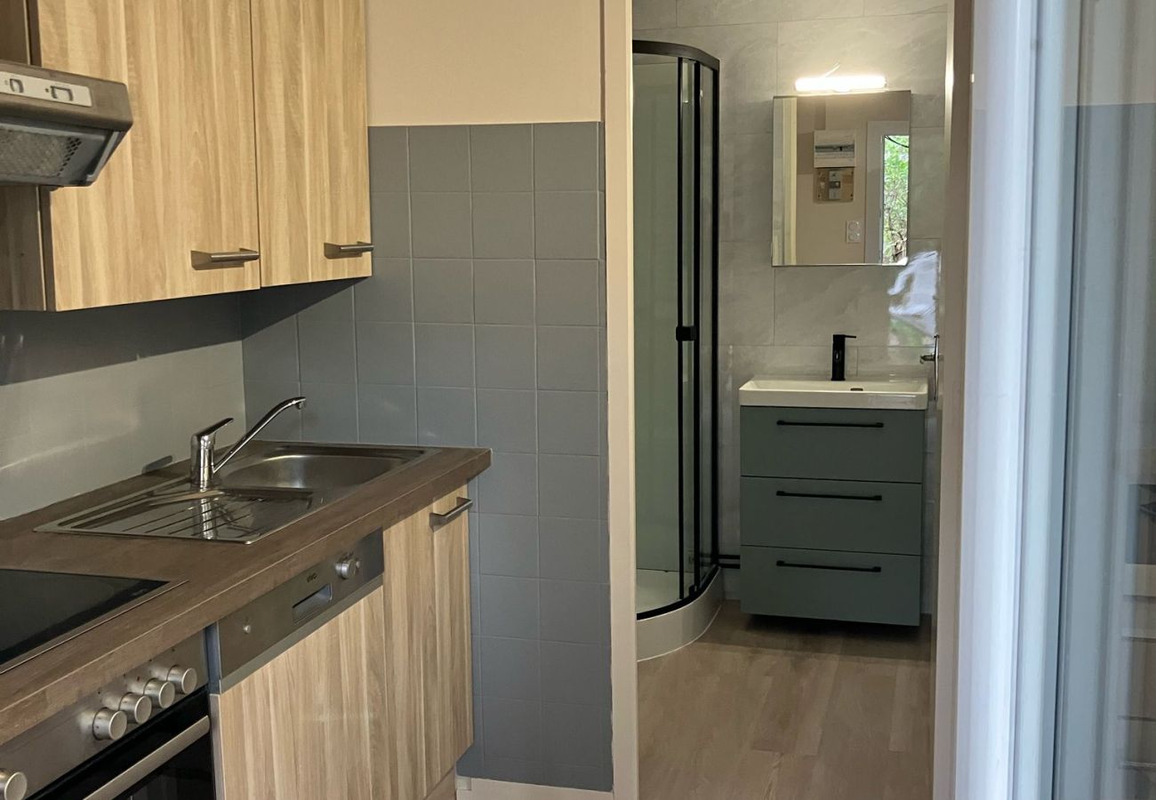 Sehr schönes, renoviertes und gepflegtes Studio mit moderner Einrichtung und grosser, sonniger Terrasse mit schönem Garten. Sie verfügen über eine Waschmaschine und eine warme Aussendusche. 2 Fenstertüren sorgen für Sonne bis zum Abend. Fahrradunterstand. 1 Doppelbett 140x190.7 Bewertungen