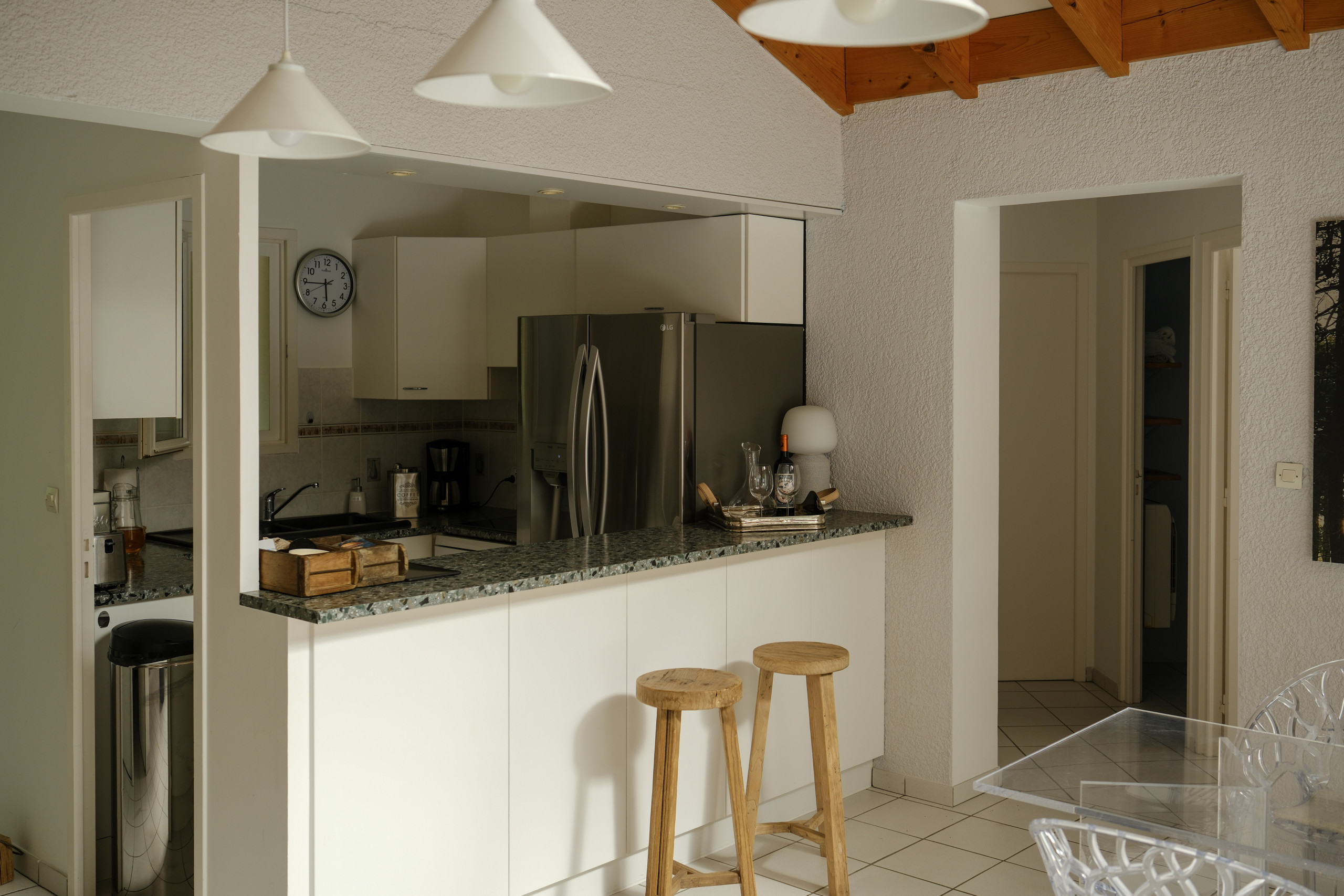 Entdecken Sie dieses einzigartige Chalet, das mitten im Wald liegt, kein Gegenüber hat und einen außergewöhnlichen Rahmen für einen Urlaub in aller Ruhe bietet. Diese lichtdurchflutete Oase der Ruhe liegt nur 400 m vom Ozean entfernt und ist ideal für Momente der Entspannung und des Auftankens mit der Familie oder mit Freunden.