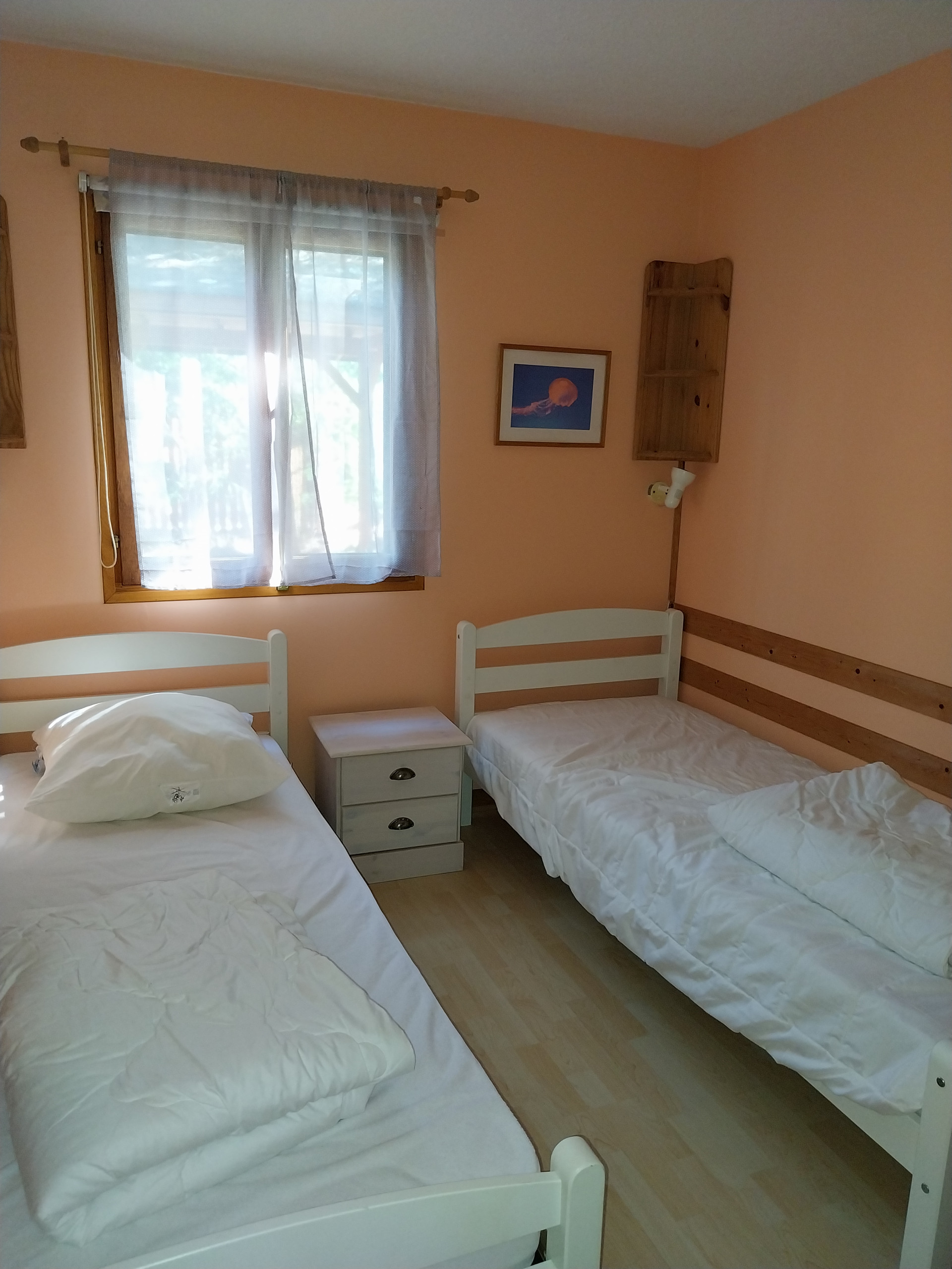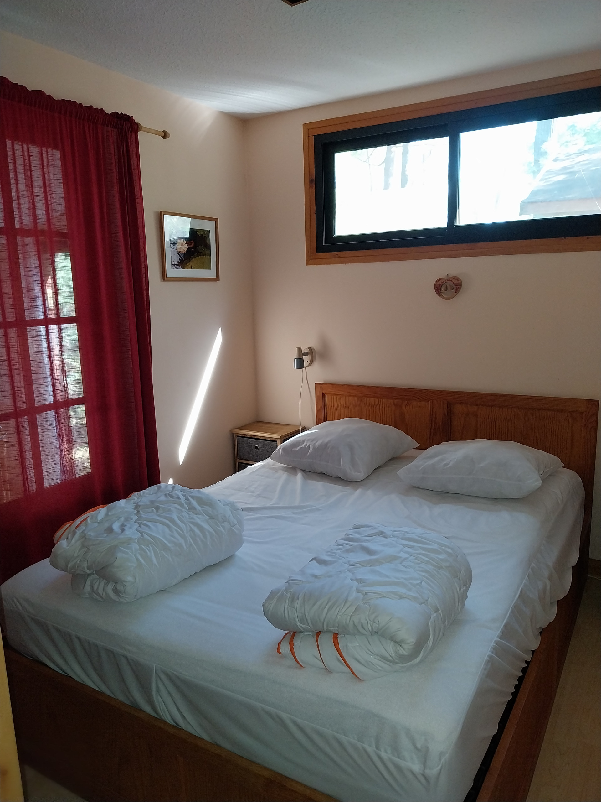 Magnificent chalet ideally located, not overlooked, with a view of the pine forest and benefiting from three sunny terraces and an equipped veranda. Modern, well-kept interior; ideal for a family holiday. Optic fiber. 1 double bed 140 x 190 and 2 single beds 90 x 190.4 reviews