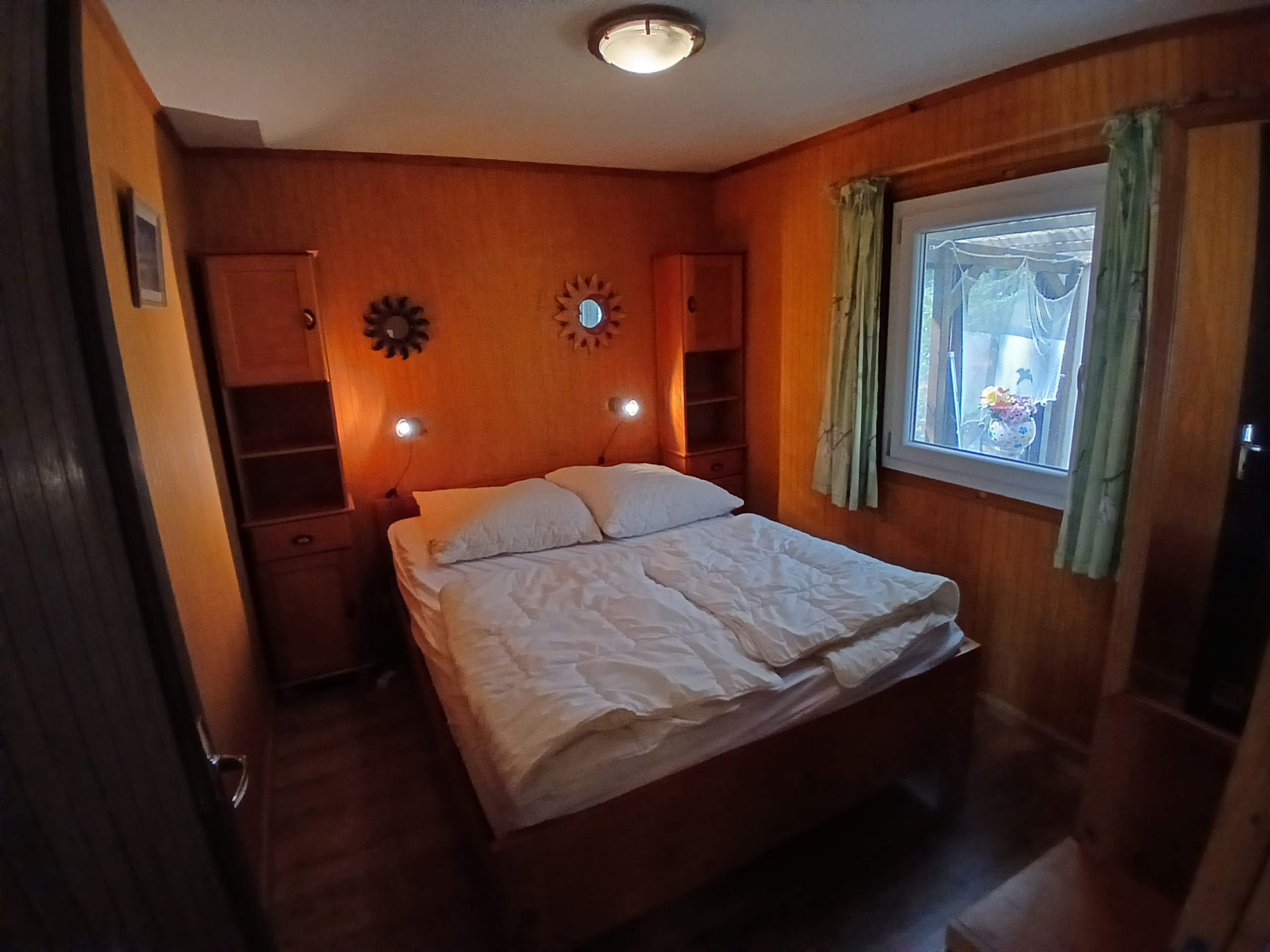 Magnificent chalet ideally located, not overlooked, with a view of the pine forest and benefiting from three sunny terraces and an equipped veranda. Modern, well-kept interior; ideal for a family holiday. Optic fiber. 1 double bed 140 x 190 and 2 single beds 90 x 190.4 reviews