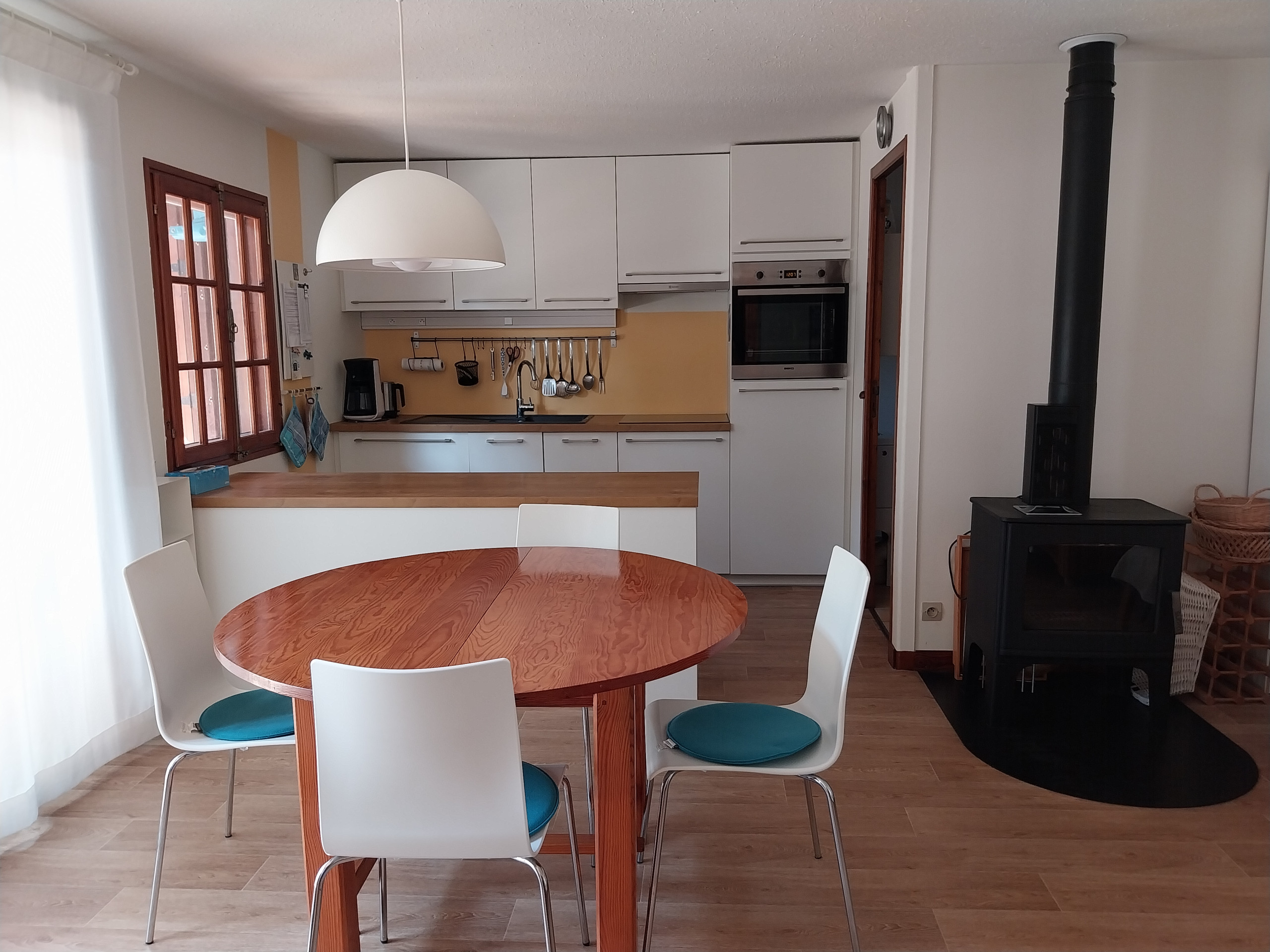 Magnificent chalet ideally located, not overlooked, with a view of the pine forest and benefiting from three sunny terraces and an equipped veranda. Modern, well-kept interior; ideal for a family holiday. Optic fiber. 1 double bed 140 x 190 and 2 single beds 90 x 190.4 reviews