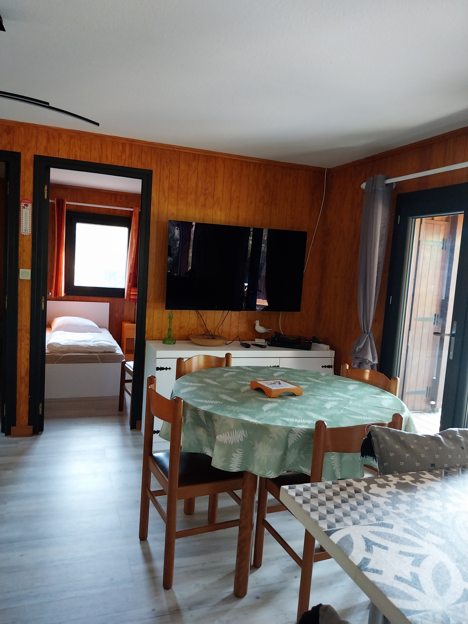 Magnificent chalet ideally located, not overlooked, with a view of the pine forest and benefiting from three sunny terraces and an equipped veranda. Modern, well-kept interior; ideal for a family holiday. Optic fiber. 1 double bed 140 x 190 and 2 single beds 90 x 190.4 reviews