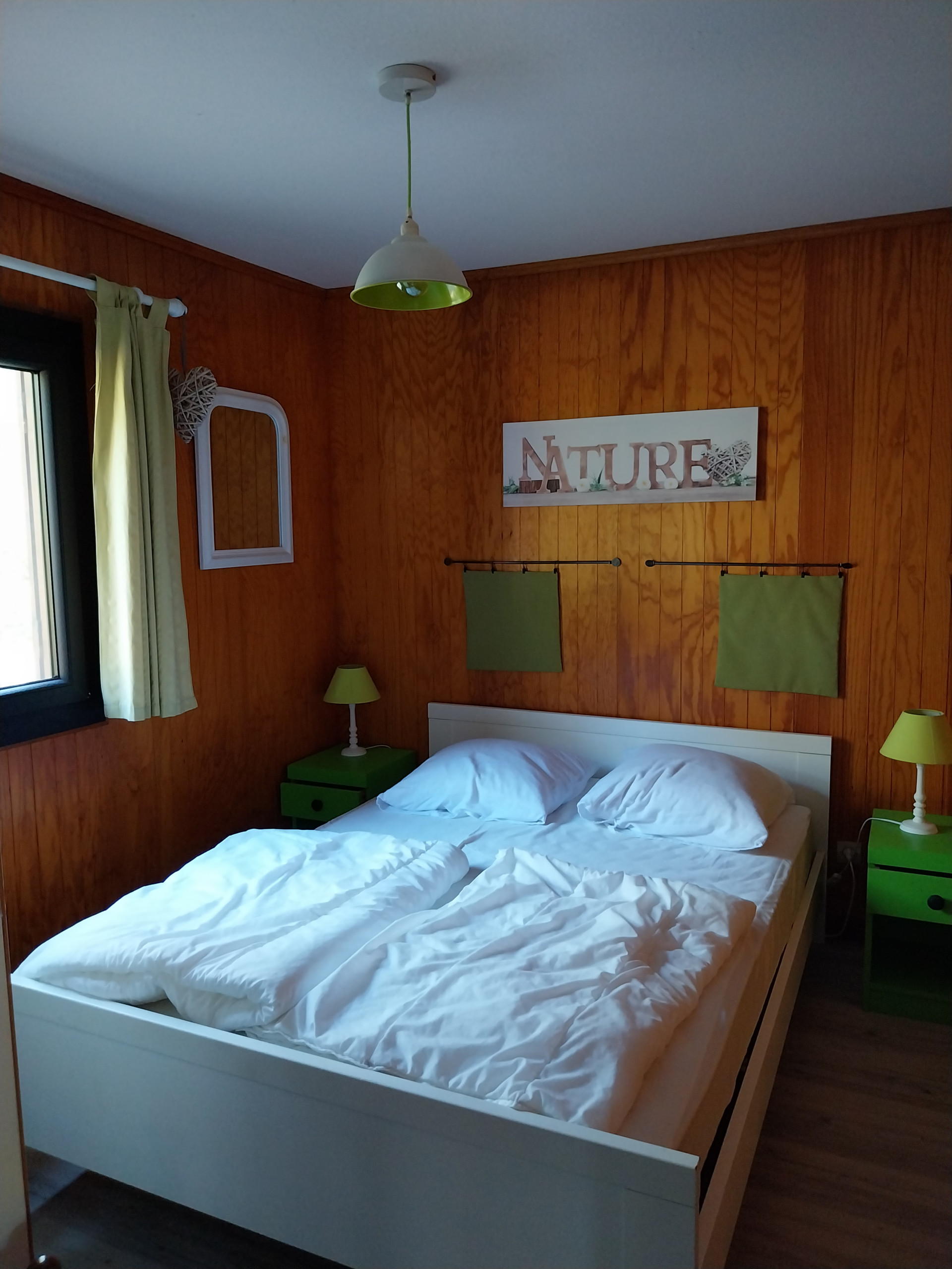 1 double bed 140x190, 2 single beds 90x190.