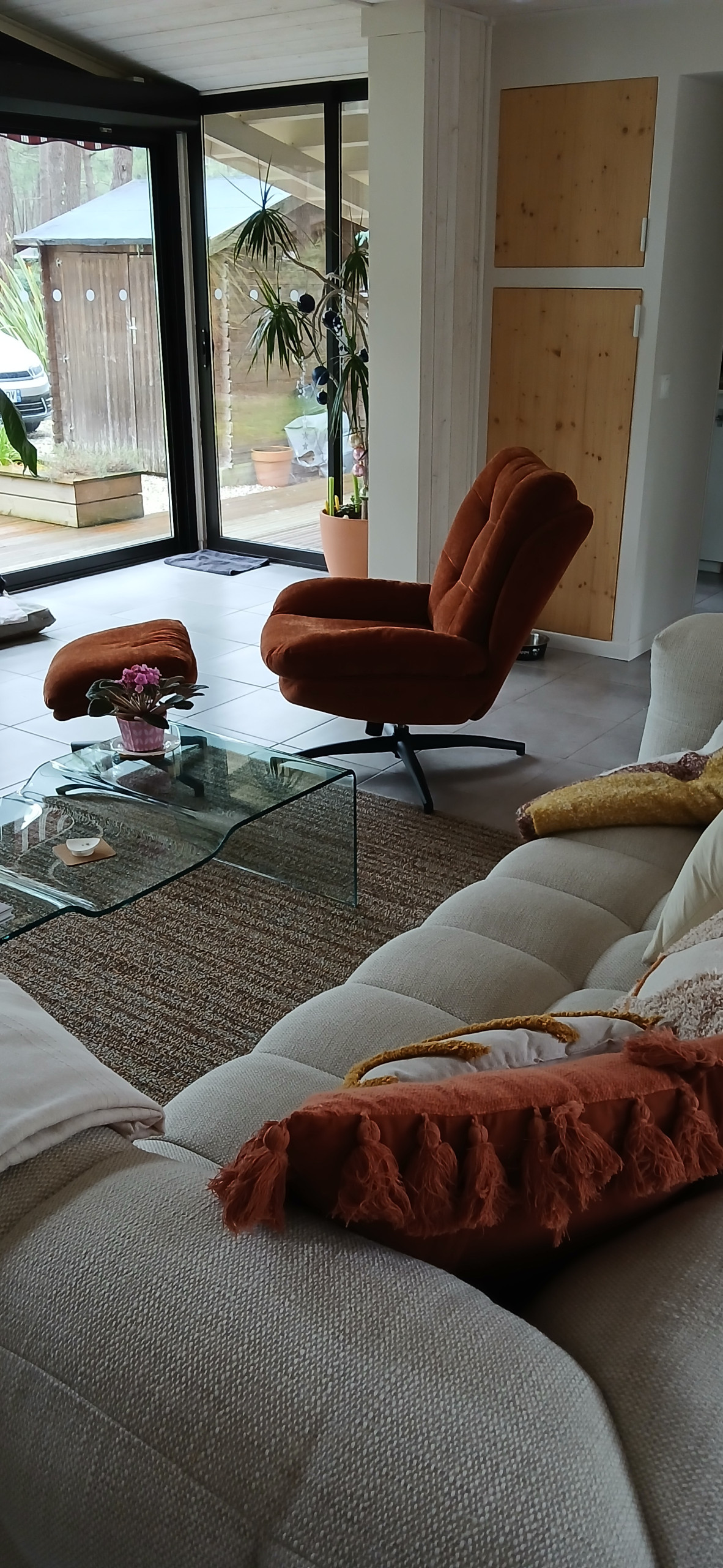 Beautiful, fully renovated Landais-2 type chalet for two people with two large terraces, one to the south with a dining area that is a large convivial space with garden furniture, and the other to the north with two sun loungers and an outdoor hot/cold water shower. The fully-equipped kitchen (steam oven, microwave, induction hob, fridge, freezer, dishwasher) opens onto a large, bright living area with large sliding doors. There is also a bedroom (double bed 140x200) with adjoining dressing room, a shower room with separate WC and a utility room with washing machine.
