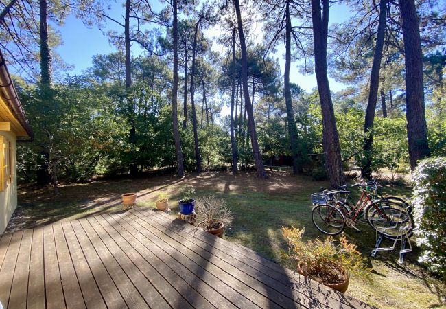 Chalet located in a quiet street close to the beach. The 53m2 terrace faces south and overlooks the lovely garden. Garden equipment, cushions and parasols are available. Carport with adjoining storeroom equipped with washing machine, iron and ironing board. Outdoor shower and bike shed complete the outdoor facilities. Inside, you'll find a built-in kitchen with fridge (2 fridge in the shelter), oven, microwave, toaster, kettle and plenty of cooking utensils. The living room has a wood-burning stove and electric radiator, TV, radio, CD and DVD player, and a range of books and games. 2 bedrooms with one 160x200 bed and 2 x 80x200 beds. The bedrooms are fitted with mosquito nets. WC separate from toilet. Bathroom with shower. Free WIFI via local provider Iris.5 reviews