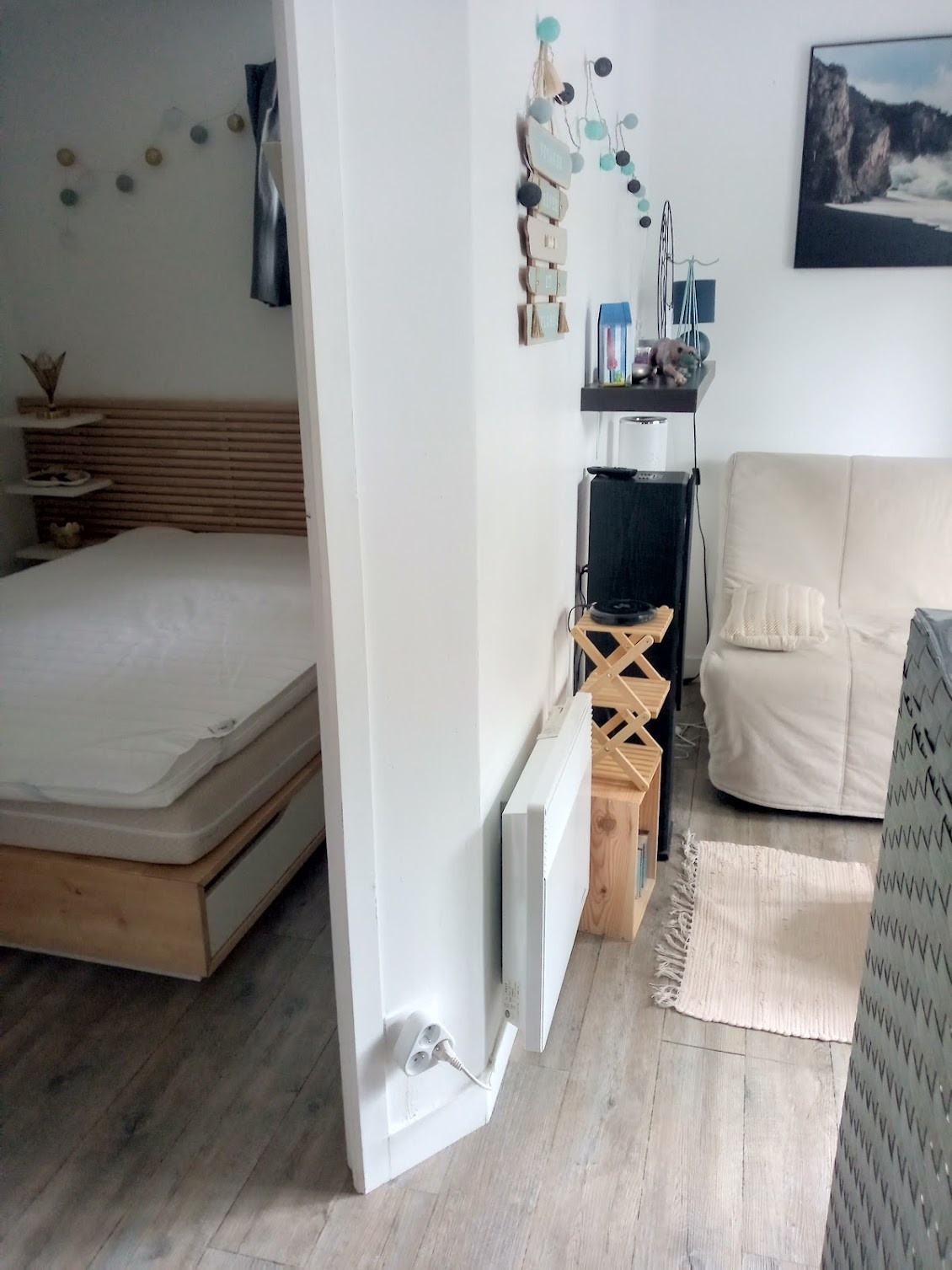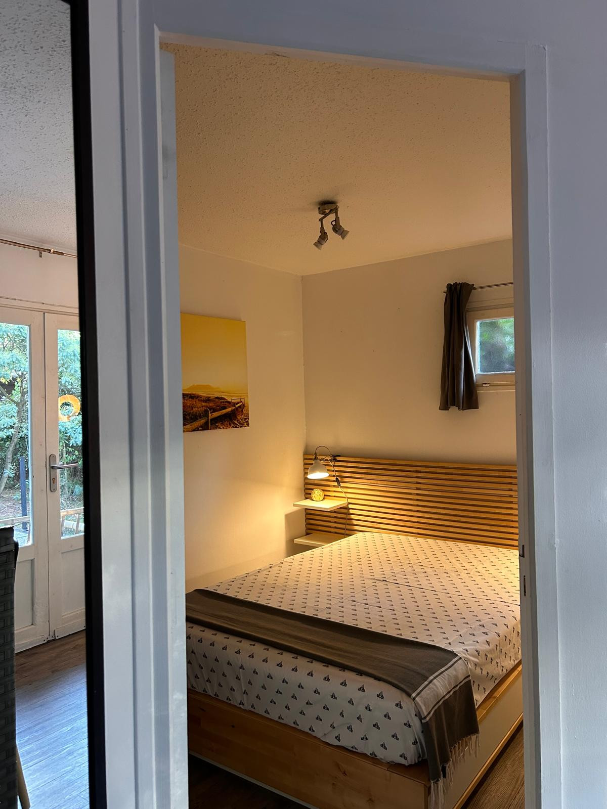 Sleeping area: 1 double bed 160x200, 2 reading lamps, and a large dressing room with 2 sliding doors, including 1 mirror. Sofa-bed 1 person 90x190. TV with decoder. Kitchen with traditional oven and 4 electric hobs. Fully equipped (electric mixer, salad spinner, microwave, crockery, glasses, etc.).