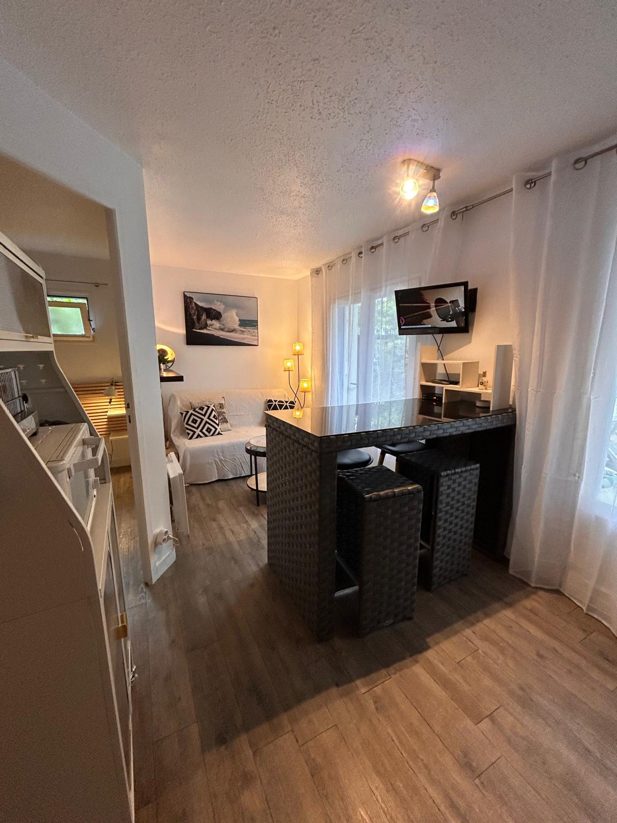 This pretty studio apartment has a vast 45 m² terrace facing south and west, so you can enjoy the sun from morning to night. It has an awning and an outdoor shower with hot water. Its exceptional location, in a peaceful setting and not overlooked, will satisfy your desire for peace and relaxation. An electric grill is at your disposal, set up on a serving table on the terrace.