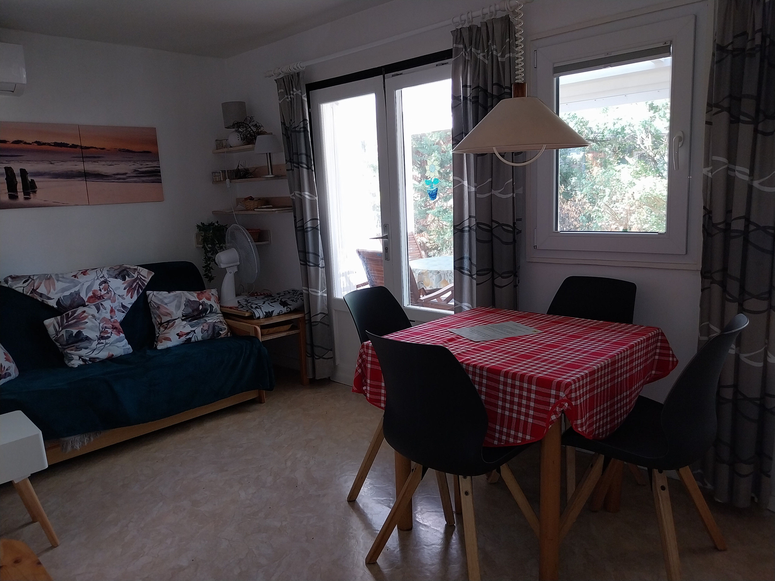 Well redecorated Studio with a separate bedroom (4 pers.max.) and a lovely terrasse and garden. Warm outdoor shower, fly screen, dishwasher and washing machine, TV. 1 double bed 140x200, 1 couch bed 180x200.