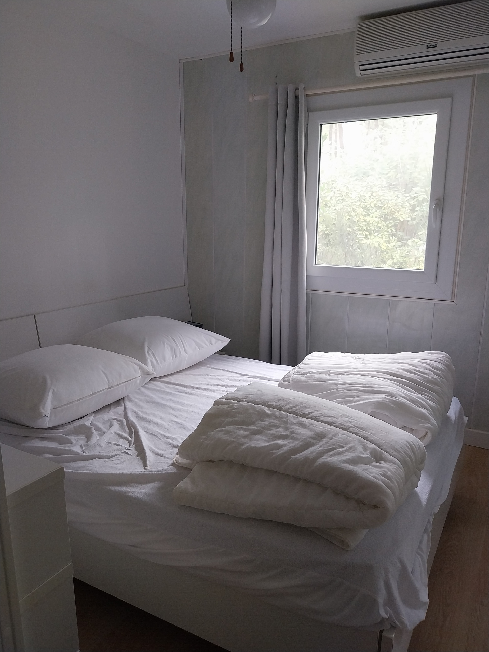 Very nice Périgord in the south part of the village Asia. Nicely decorated fitted with TV, fire place and a warm outdoor shower. 1 double bed 140x190, 1 bunk bed 2x90x190.4 reviews