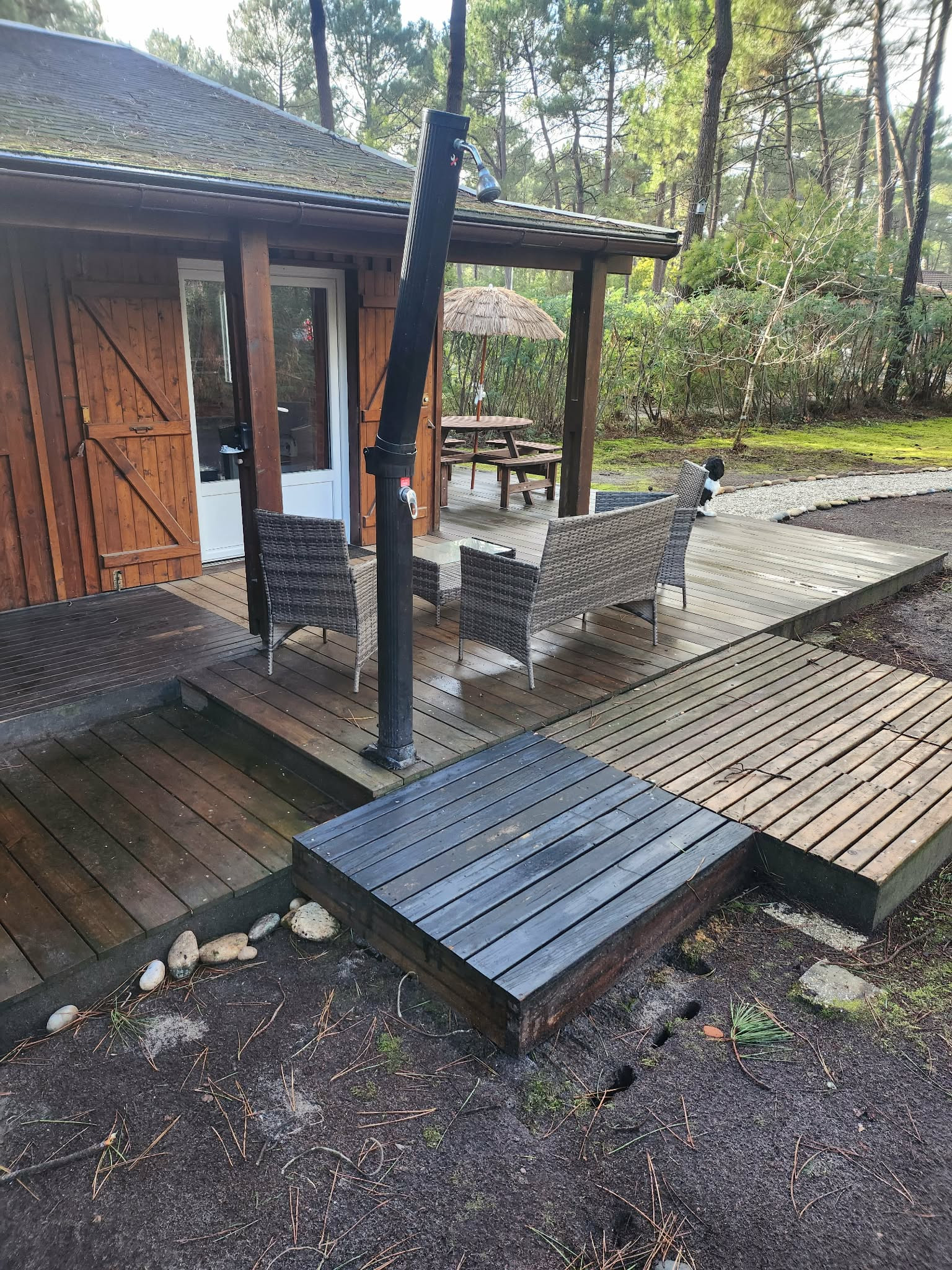 This charming Périgord-style chalet has been lovingly furnished, with completely renovated flooring and new windows and doors, inviting you to enjoy a holiday where relaxation and comfort go hand in hand. New furnishings, fibre optic internet connection, a terrace on each side for relaxing and lounging – in short, everything you need for a peaceful stay with family or friends.