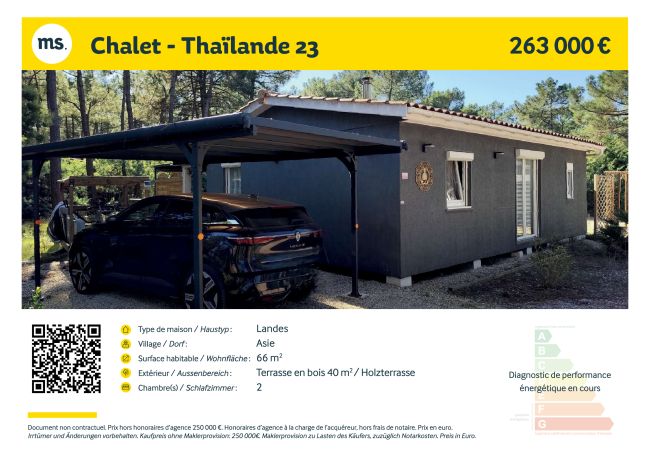Atypical chalet of Médoc model, ideally located in a cul-de-sac, in the Asia village. This property has been fitted out by optimising the space, it is very bright thanks to the central bay window....