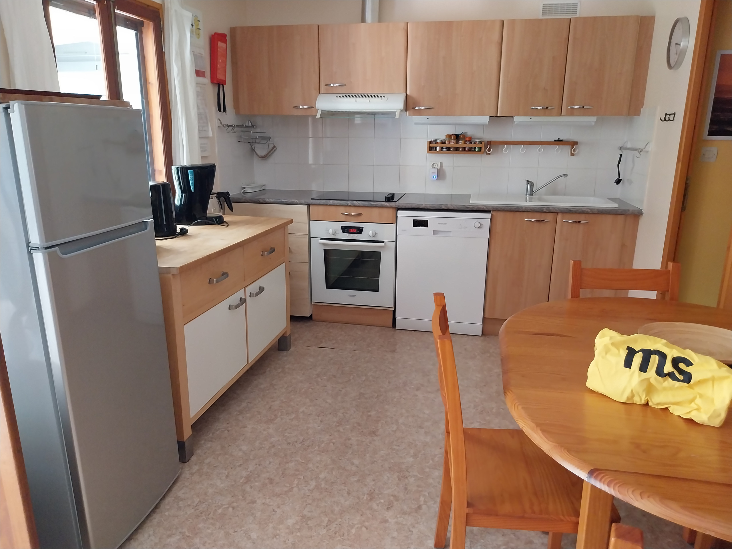 La cuisine est équipée d'un lave-vaisselle, de plaques vitrocéramiques.