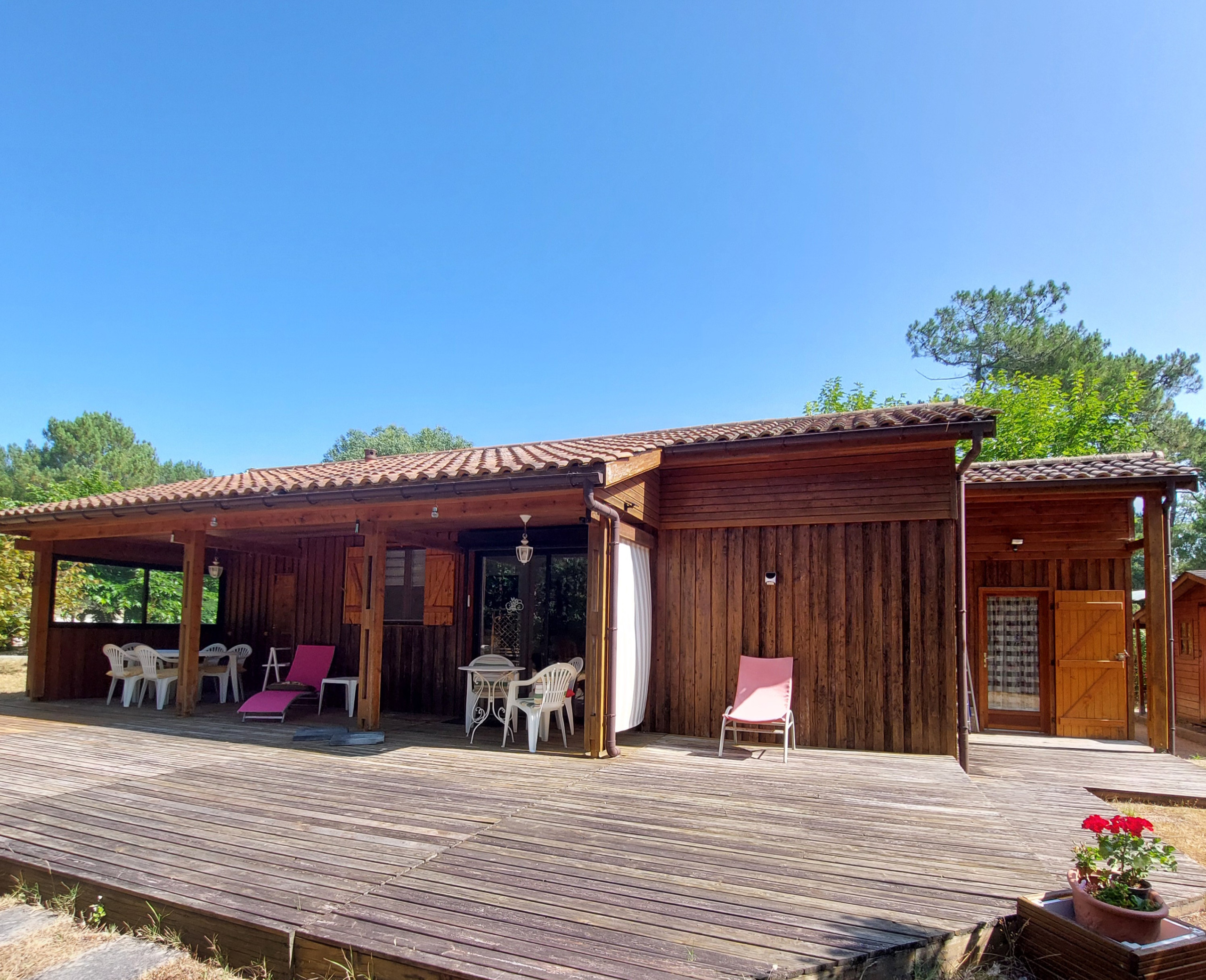 Magnifique chalet Landais 3 chambres au village Amérique du Nord. De beaux volumes et un équipement généreux vous y attendent. 1 lit 160x200, 1 lit 140x200, 1 lit 140x190 et 2 lits 90x200. Une nouvelle salle de bain a été faite en 2023 ainsi que des nouvelles moustiquaires et nouveau sèche-linge ! Fibre