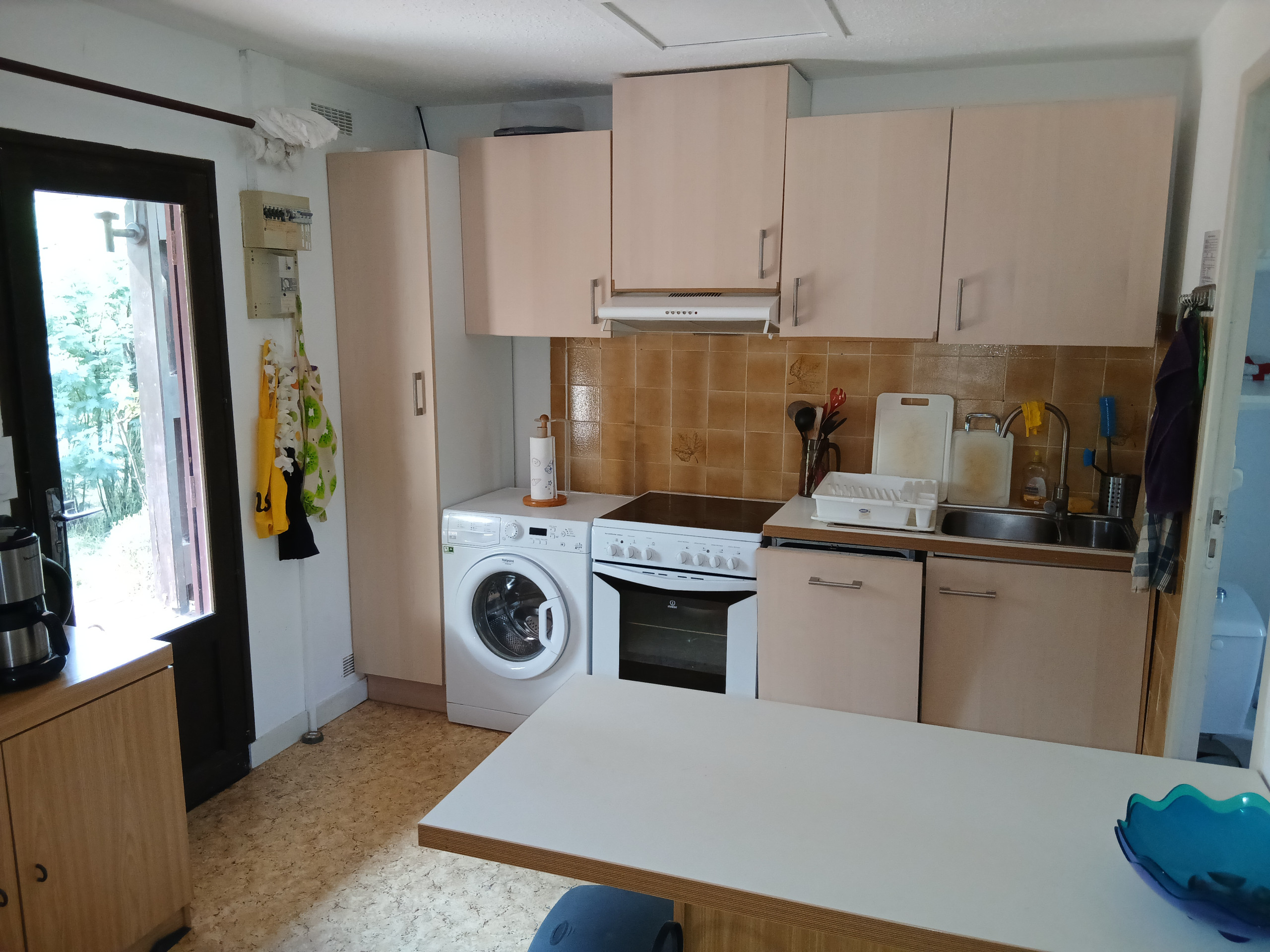 La cuisine est équipée d'un lave-vaisselle, de plaques vitrocéramiques.