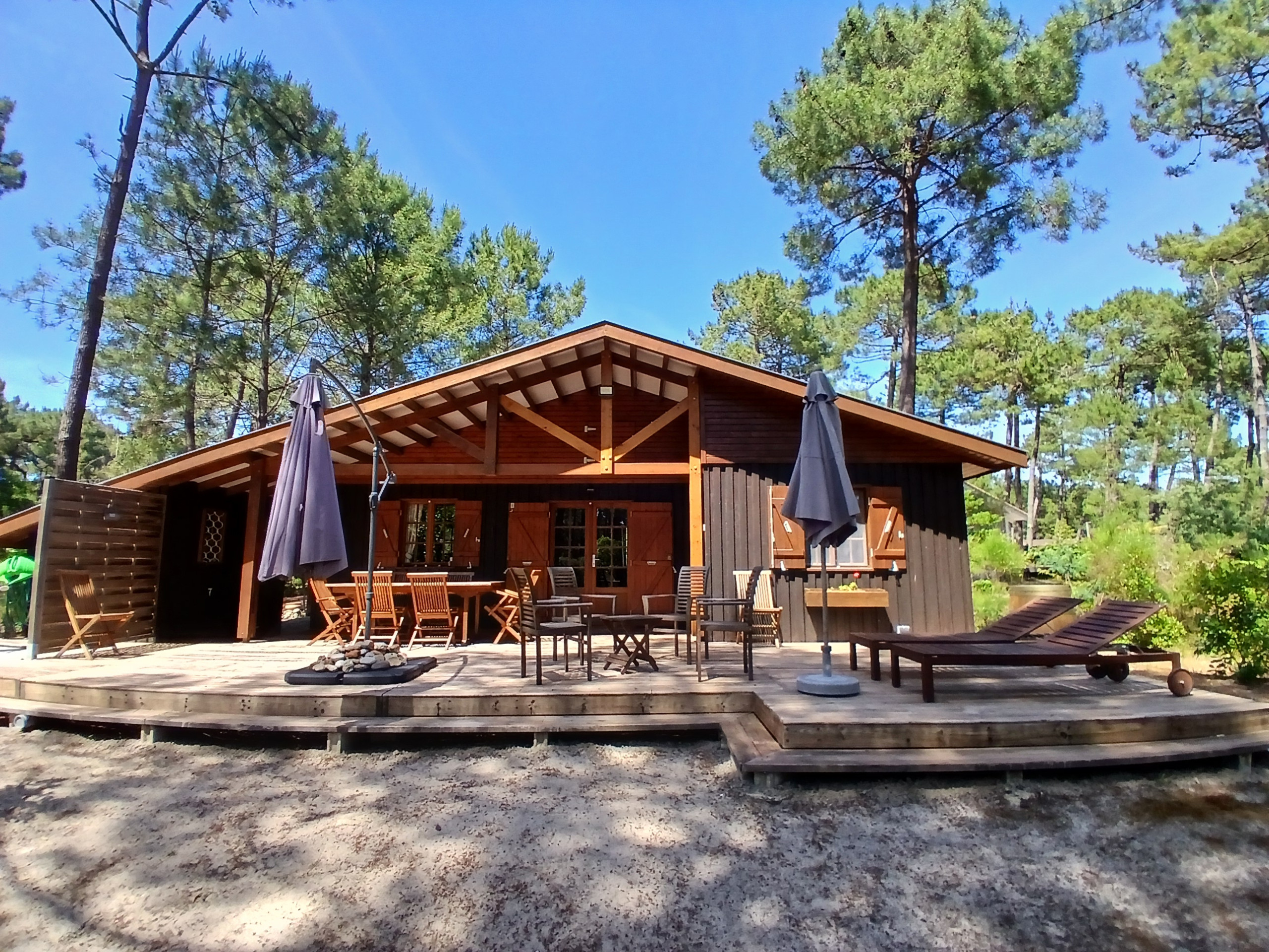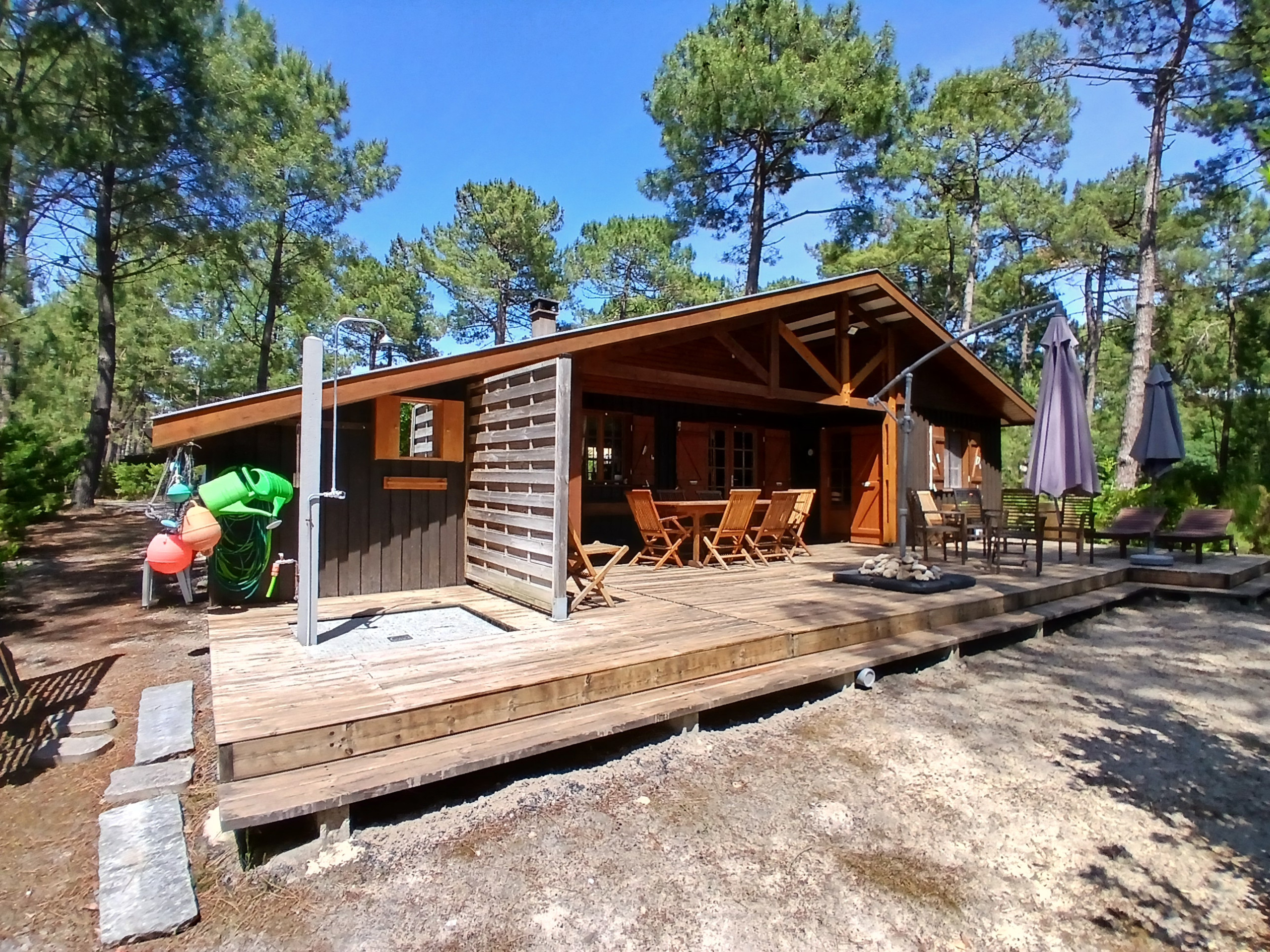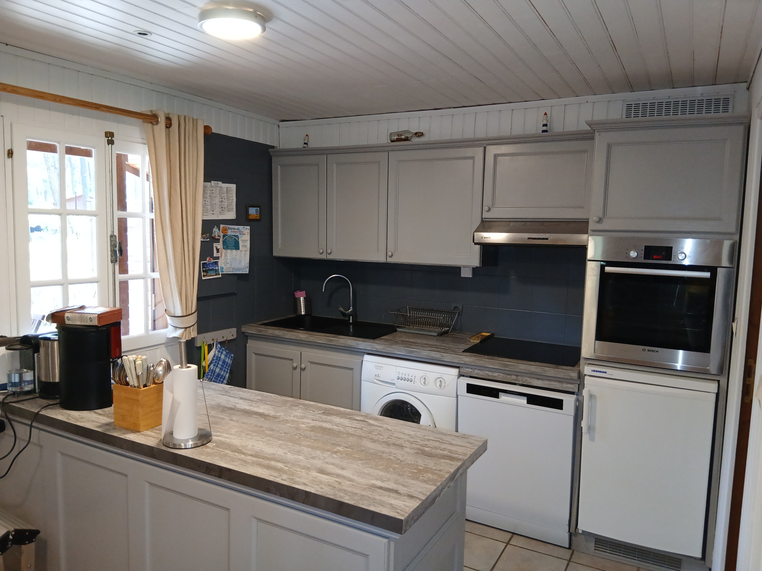 Chalet individuel où il fait bon vivre… Equipement soigné : lave-linge, lave-vaisselle, micro-ondes, douche extérieure chaude, grande terrasse, abri-vélos. Cuisine toute équipée donnant sur le séjour, WC et salle de bain séparés. 1 lit double 140x200, 1 lit superposé 2x80x200, 1 lit simple 80x200.