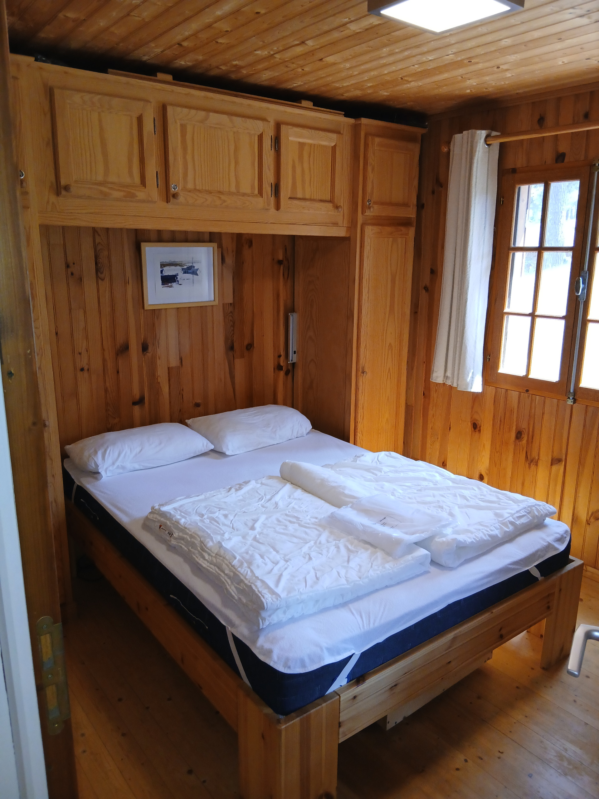 Chalet bien équipé sur un emplacement calme. 1 lit double 140x190 (matelas neuf automne 2020), 2 lits simples 90x200, 1 lit simple 90X190. Salon de jardin neuf en teck. Extension terrasse en 2021, nouvelle salle de bain avec douche italienne, installation de la fibre et rénovation des chambres.