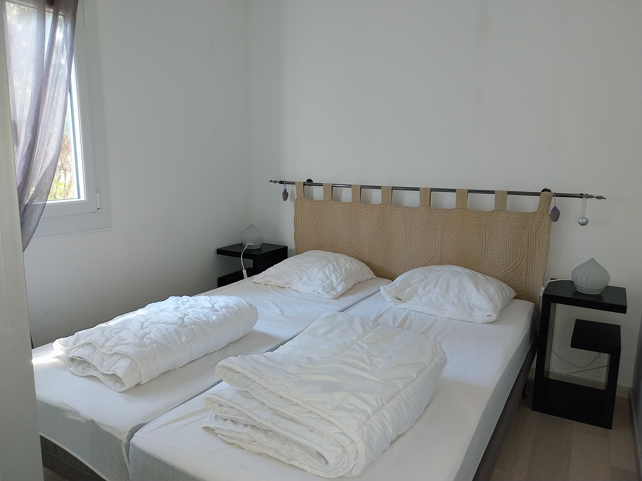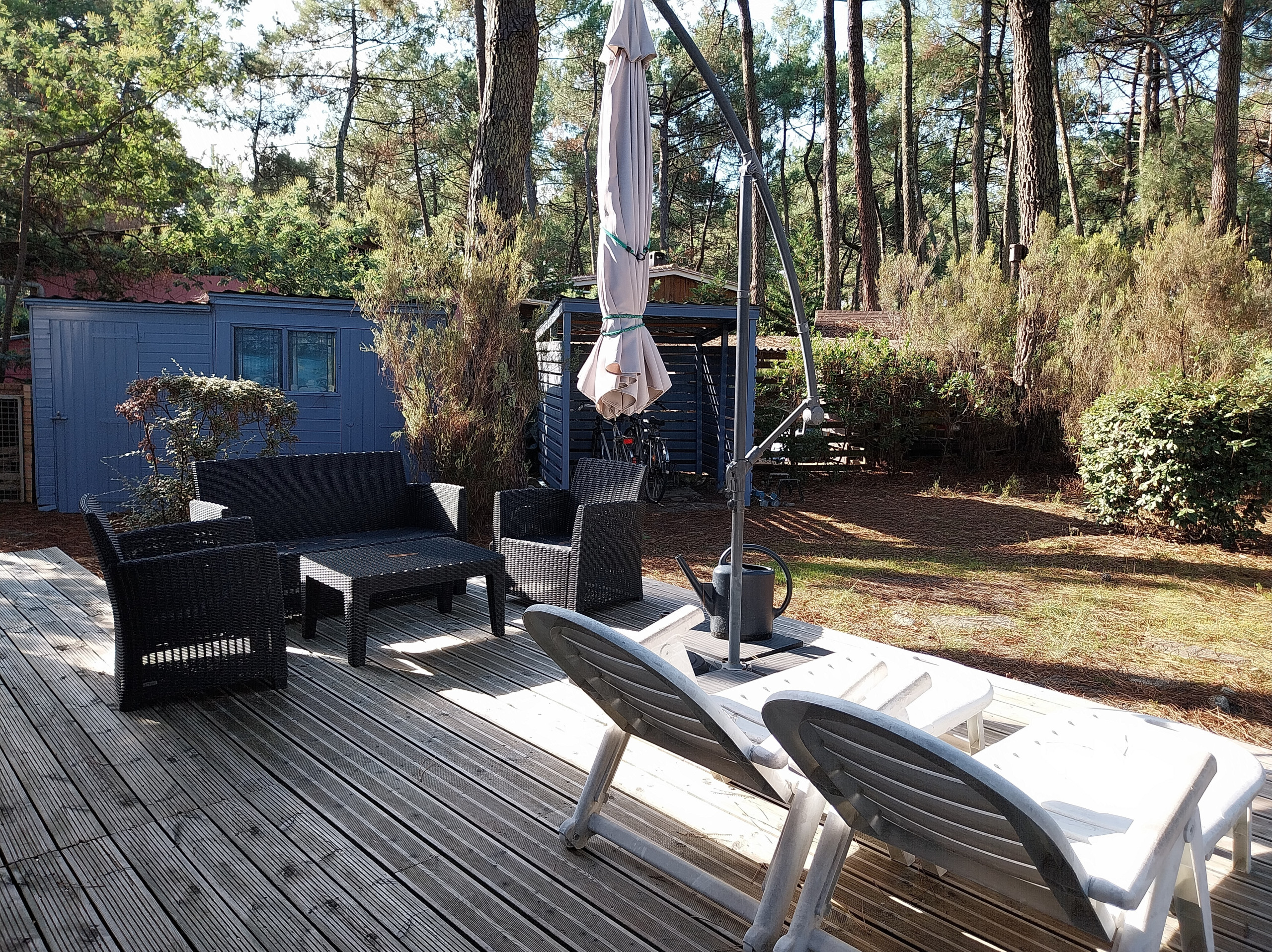 Magnifique chalet idéalement situé, sans vis-à-vis avec vue sur la pinède bénéficiant de trois terrasses ensoleillées et d'une véranda équipée. Intérieur moderne et soigné ; idéal pour passer des vacances en famille. Fibre. 1 Lit double 140 x 190 et 2 lits simples 90 x 190.4 avis
