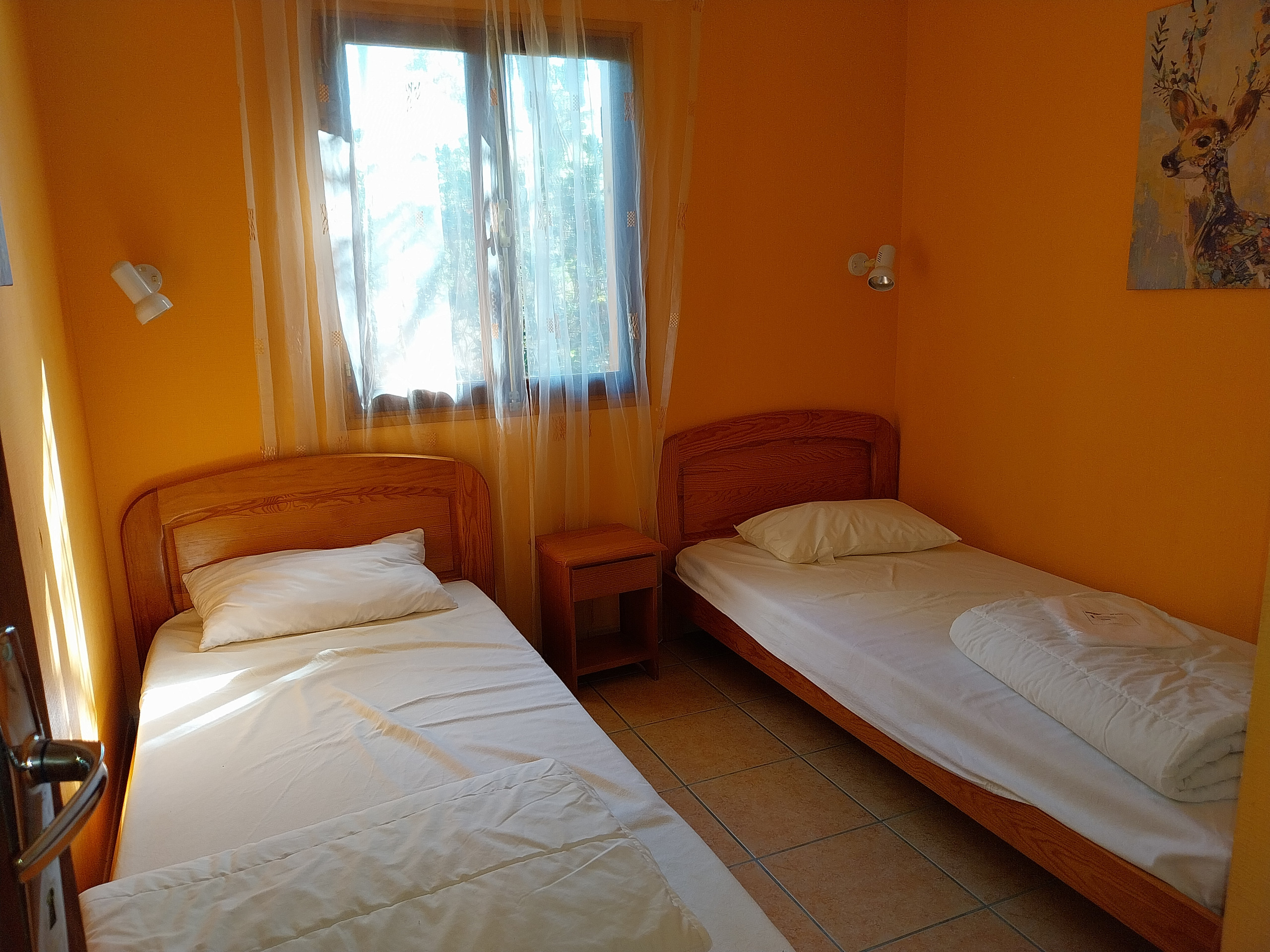 Bien entretenue et bien équipée, avec une grande terrasse côté est et une extension de terrasse au sud, la maison se situe dans une impasse avec peu de circulation. Vous disposez d'un grand frigo, des plaques de cuisson à induction, d'un lave-linge et lave-vaisselle et d'une télévision. Chambre 1 : 1 lit double 160x200, chambre 2 : 2 lits simples 80x190, chambre 3 : 2 lits superposés 90x200.