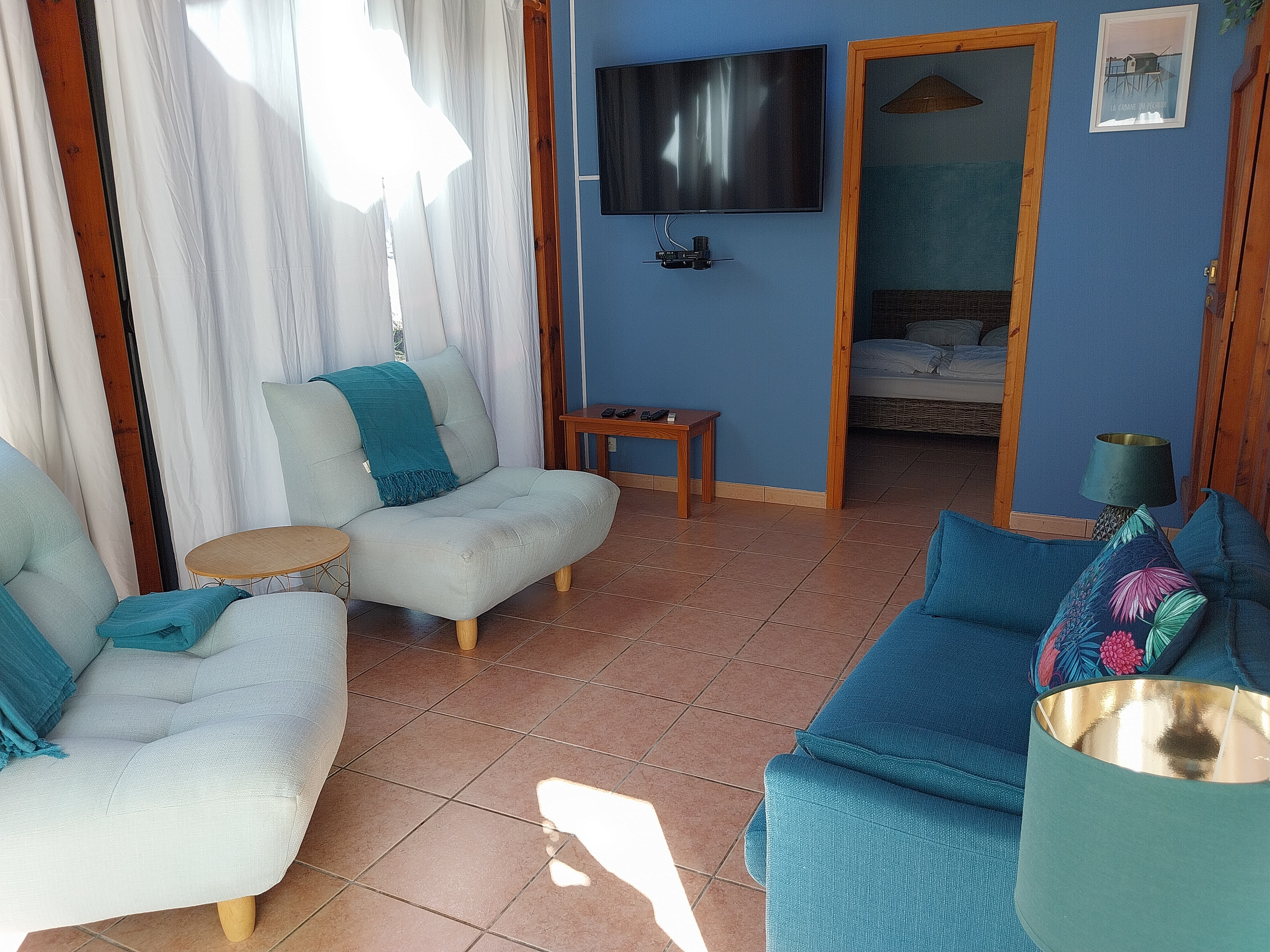 Orienté sud, sans mitoyenneté, sur un grand terrain, sans vis-à-vis, au bout d'une impasse, il se situe dans un environnement calme et à 10mn à pieds du centre commercial et de la plage.