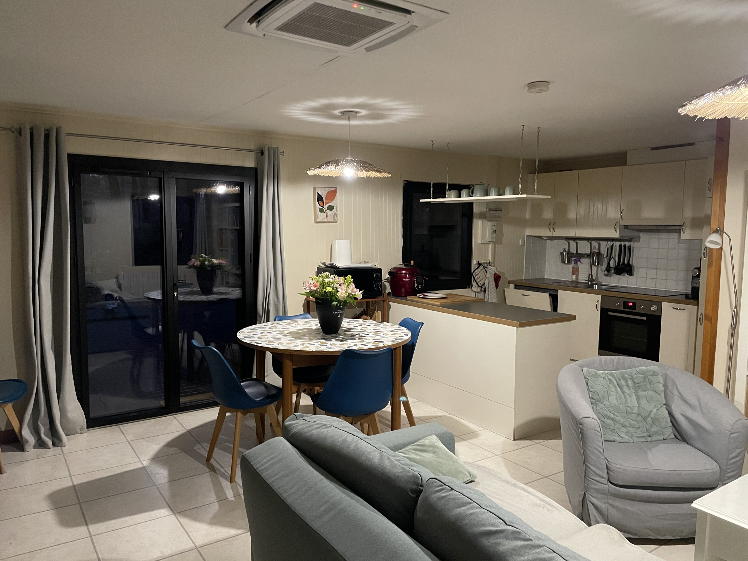 Cuisine spacieuse et fonctionnelle ; Plaque à induction, four micro-ondes, grand frigo-congélateur (3 tiroirs), lave-vaisselle, Senseo.