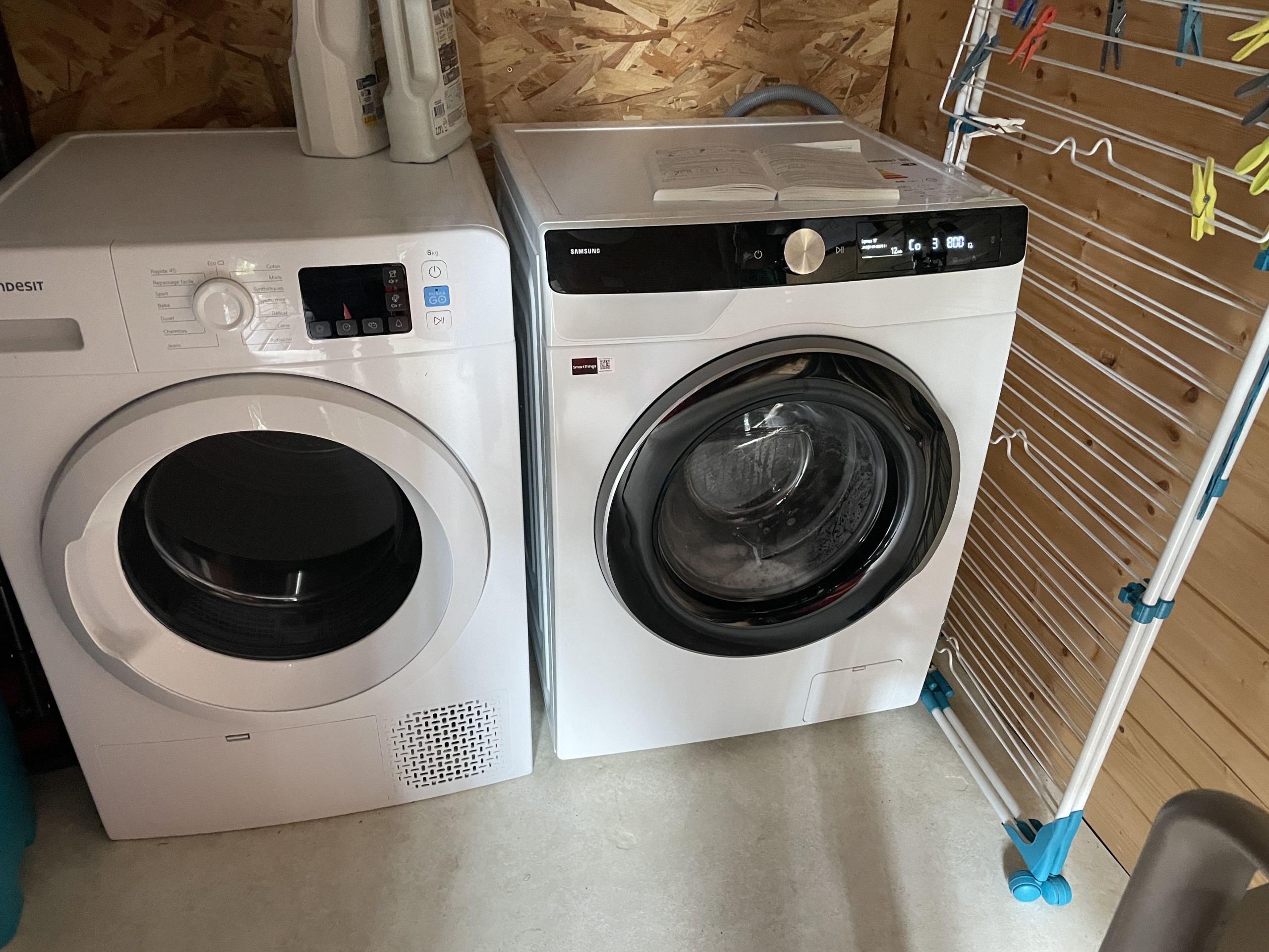 Téléviseur smart TV, livres et jeux de société. Derrière le chalet un bel extérieur spacieux orienté S/O, une grande terrasse bois env 55m2, banc, tables et chaises, 2 bains de soleil, un parasol déporté de 4.20 de diamètre. 1 cellier à disposition avec machine à laver, sèche-linge, et rangements.