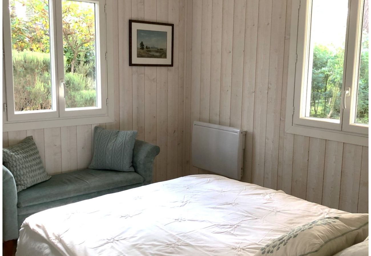 Très beau chalet de Type Landais-2 entièrement rénové pour deux personnes avec deux grandes terrasses dont l'une au sud avec coin repas qui est un grand espace convivial avec salon de jardin et l'autre au nord avec deux bains de soleil et une douche extérieure eau chaude / eau froide. La cuisine aménagée équipée (four vapeur, micro-onde, plaque induction, réfrigérateur, congélateur, lave-vaisselle) ouvrant sur un large espace de vie très lumineux avec de larges baies coulissantes. Vous y trouverez également une chambre (lit double 140x200) avec son dressing attenant puis une salle de douche avec WC séparés ainsi qu’une buanderie avec lave-linge.