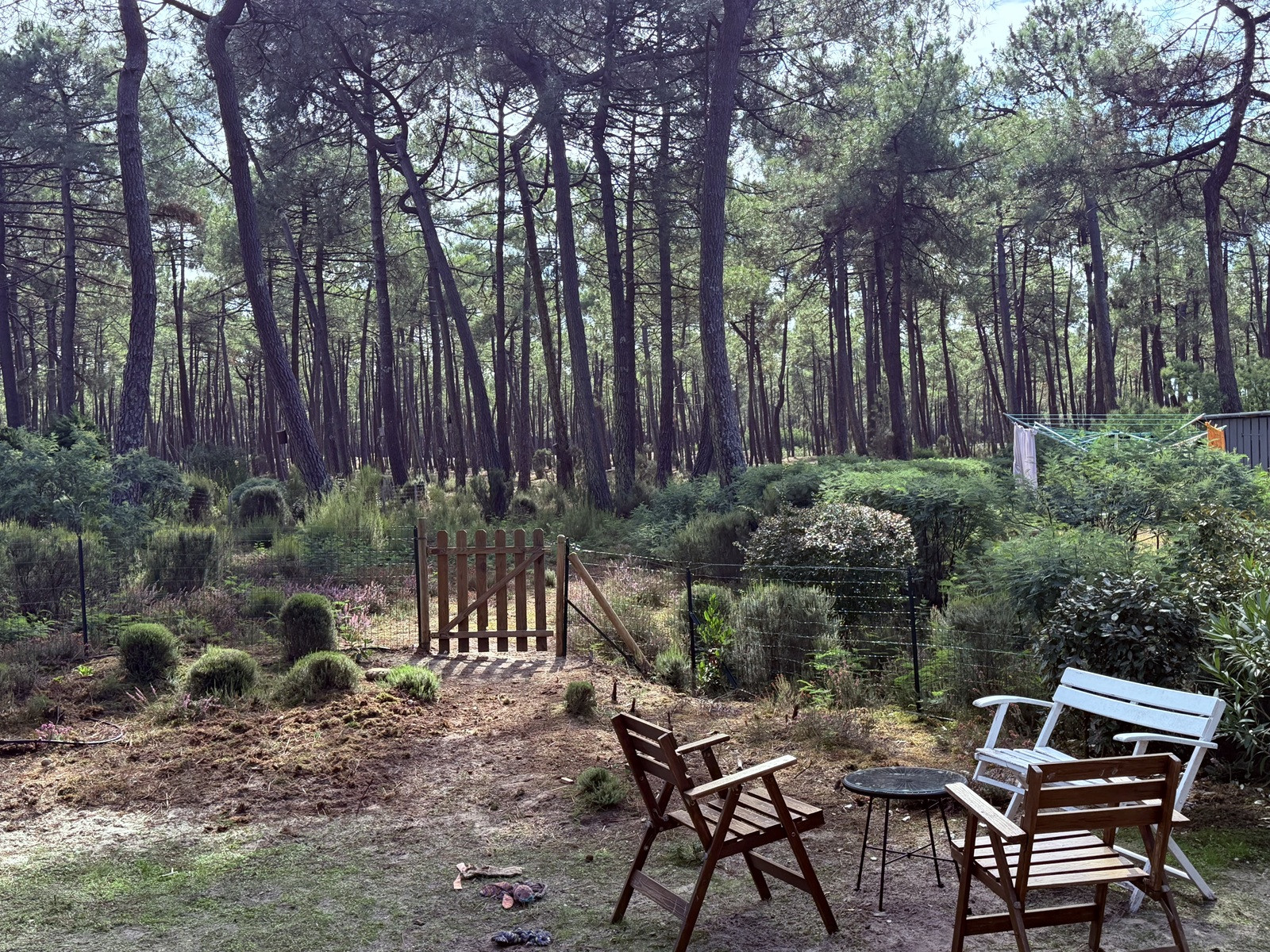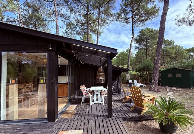 Maison de vacances de première qualité : Maison jumelée (type Périgord) rénovée il y a quelques années, agrandie à 40 m² et aménagée avec soin - dans le village Afrique qui s'étend jusqu'aux dunes, dans la forêt de pins clairsemée et est entretenu comme un parc.