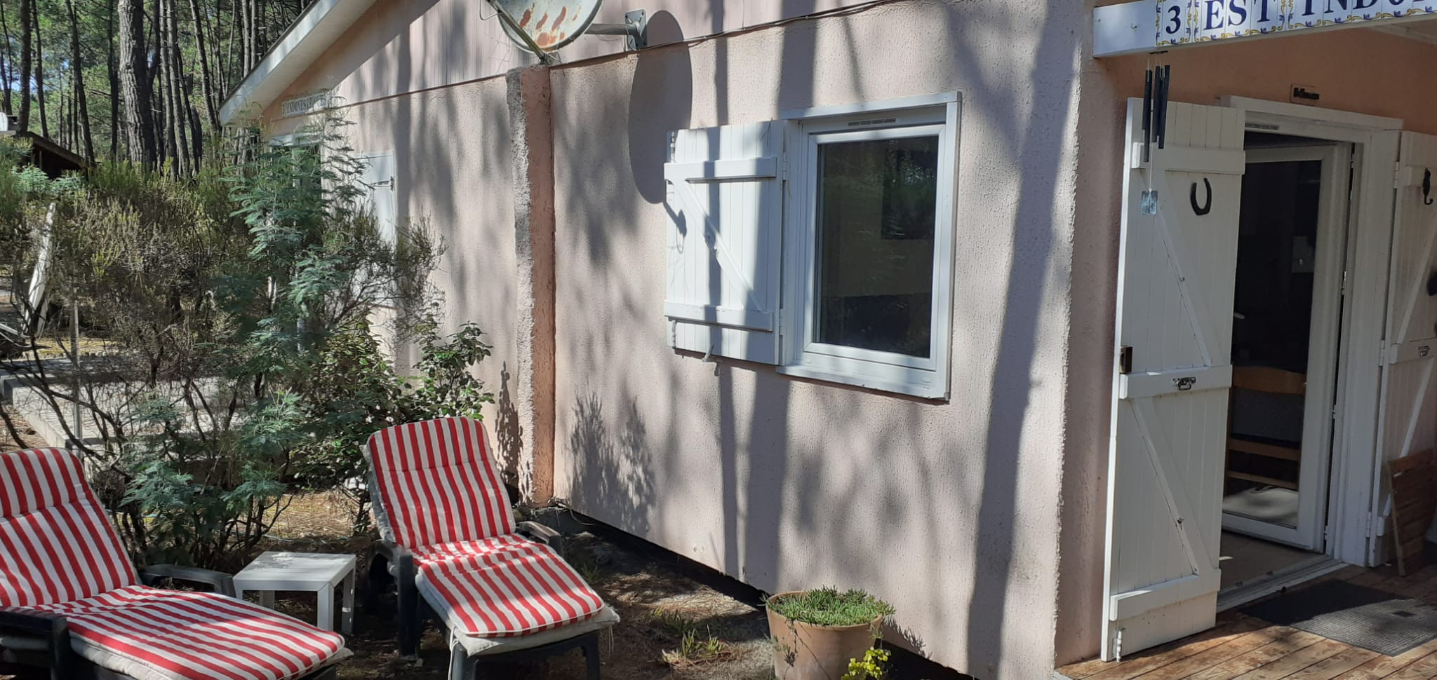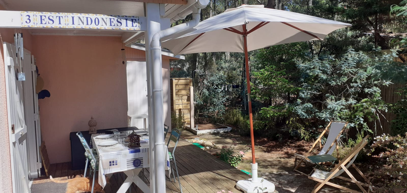 Maison de vacances de première qualité : Maison jumelée (type Périgord) rénovée il y a quelques années, agrandie à 40 m² et aménagée avec soin - dans le village Afrique qui s'étend jusqu'aux dunes, dans la forêt de pins clairsemée et est entretenu comme un parc.