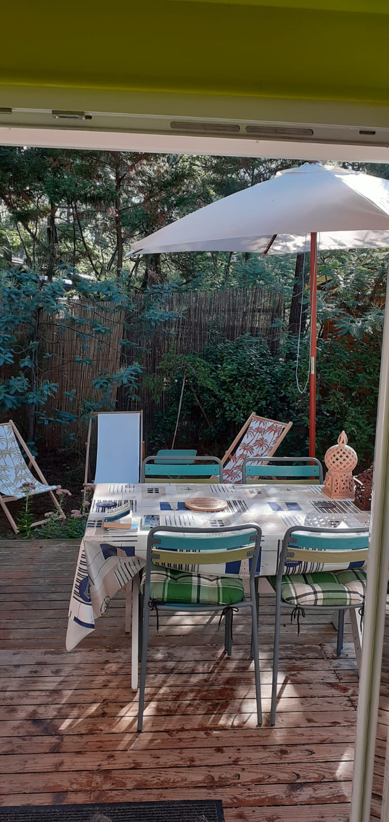 Périgord agrandi situé sur une agréable parcelle face à la forêt avec une large terrasse partiellement couverte, douche extérieure froide branchée sur tuyau d'arrosage. Vous disposez d'un lave-vaisselle, d'une télévision et d'un accès gratuit au réseau Wifi mutualisé Coconut (Valable pour 2 appareils uniquement) . Agréable pour se détendre en vacances. 1 lit double 140x190, 2 lits simples 2x90x200. TV LED avec enregistreur intégré (chaînes allemande uniquement).5 avis