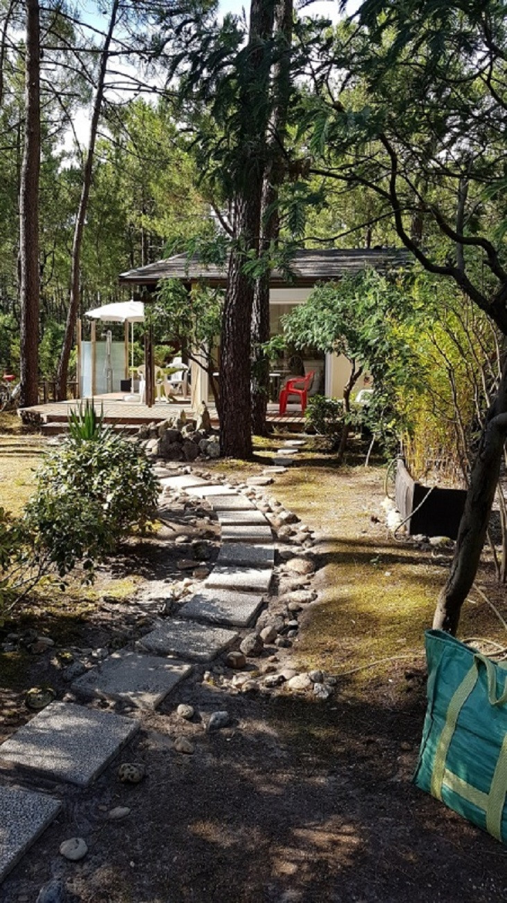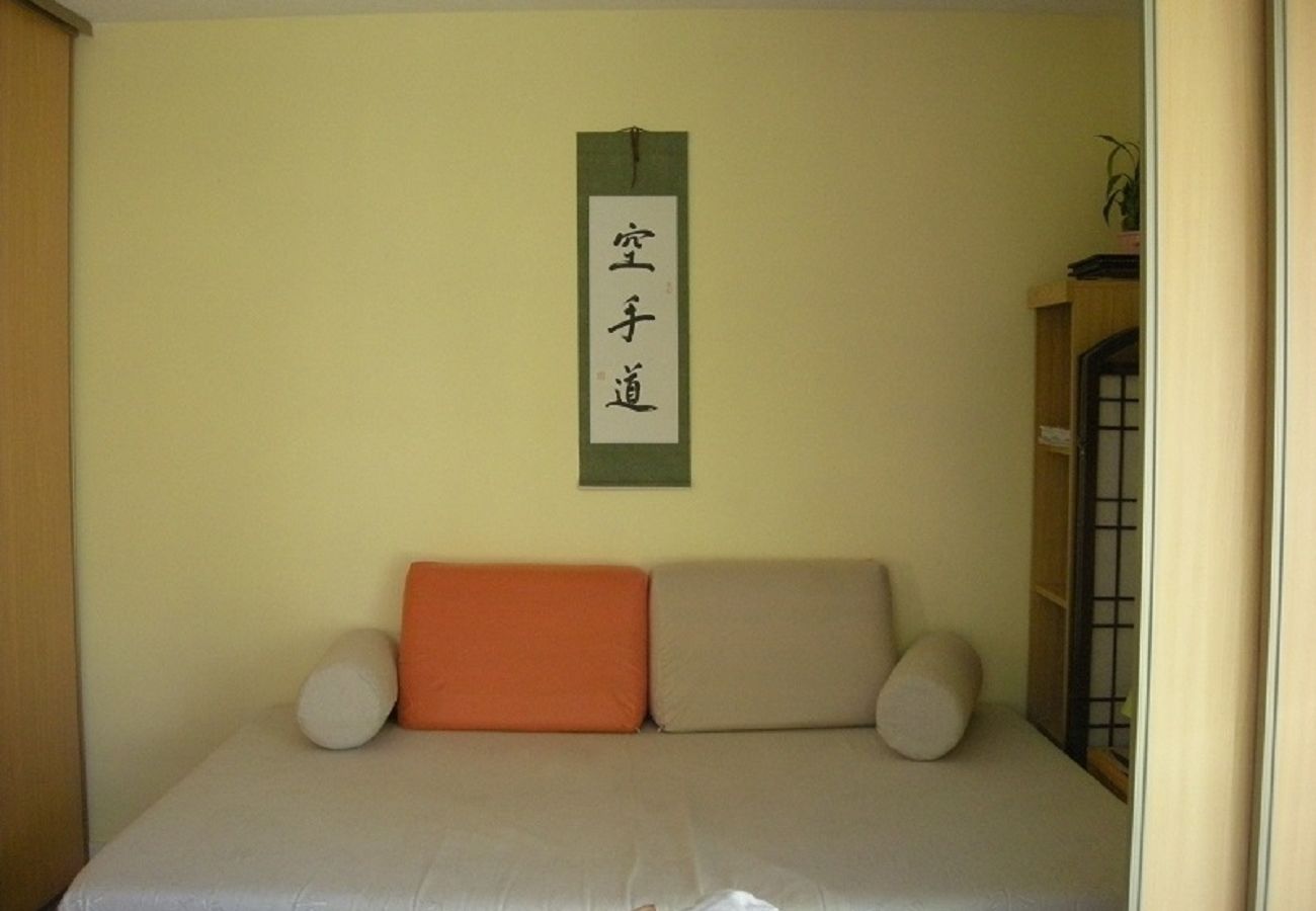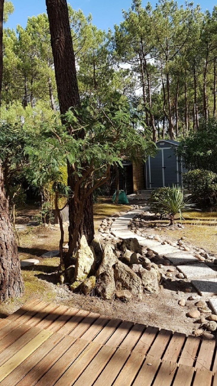 Studio lumineux grâce à une grande baie vitrée au cœur du village Asie. Vous profiterez d'un grand jardin privé, bien aménagé et décoré ainsi que d'une terrasse agrandie. Chambre partiellement séparée par des panneaux rétractables. 1 lit double 140X200.