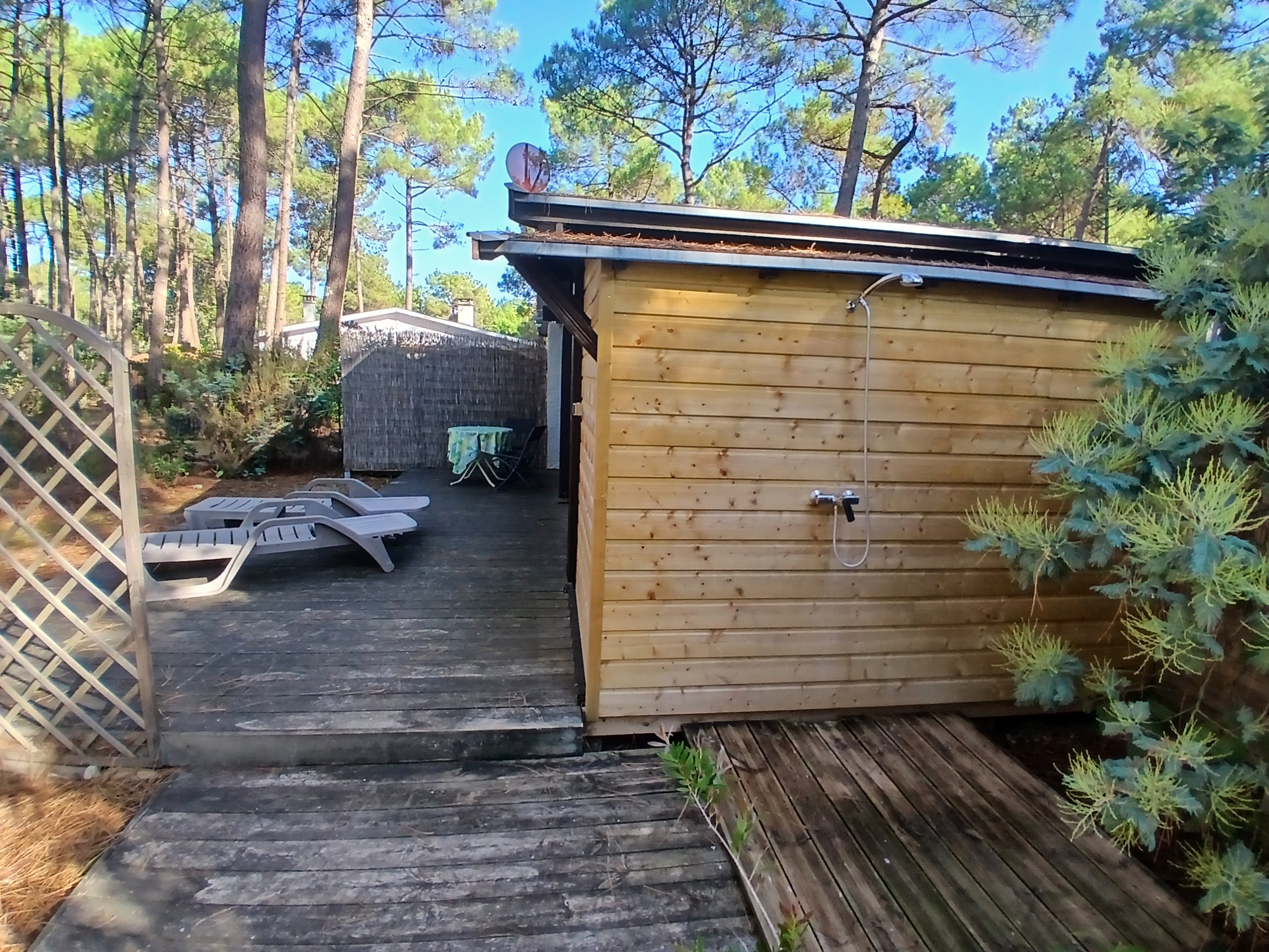 A l'extérieur, un gros rafraichissement de la parcelle a été entrepris, augmentant espace et luminosité et une douche chaud/froid a été installée.
