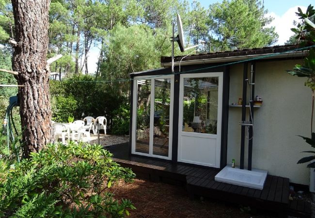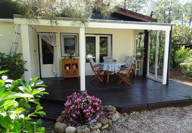 Studio rénové avec chambre séparée et un joli coin de terrasse abrité du vent. Jardin agréable. Machine à laver, lave-vaisselle, TV, douche extérieure chaude, moustiquaires. 1 lit double 140x200, 1 couchette double 180x200.
